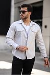 Erkek Oversize Geniş Kesim Çift Cep Denim Ceket KREM