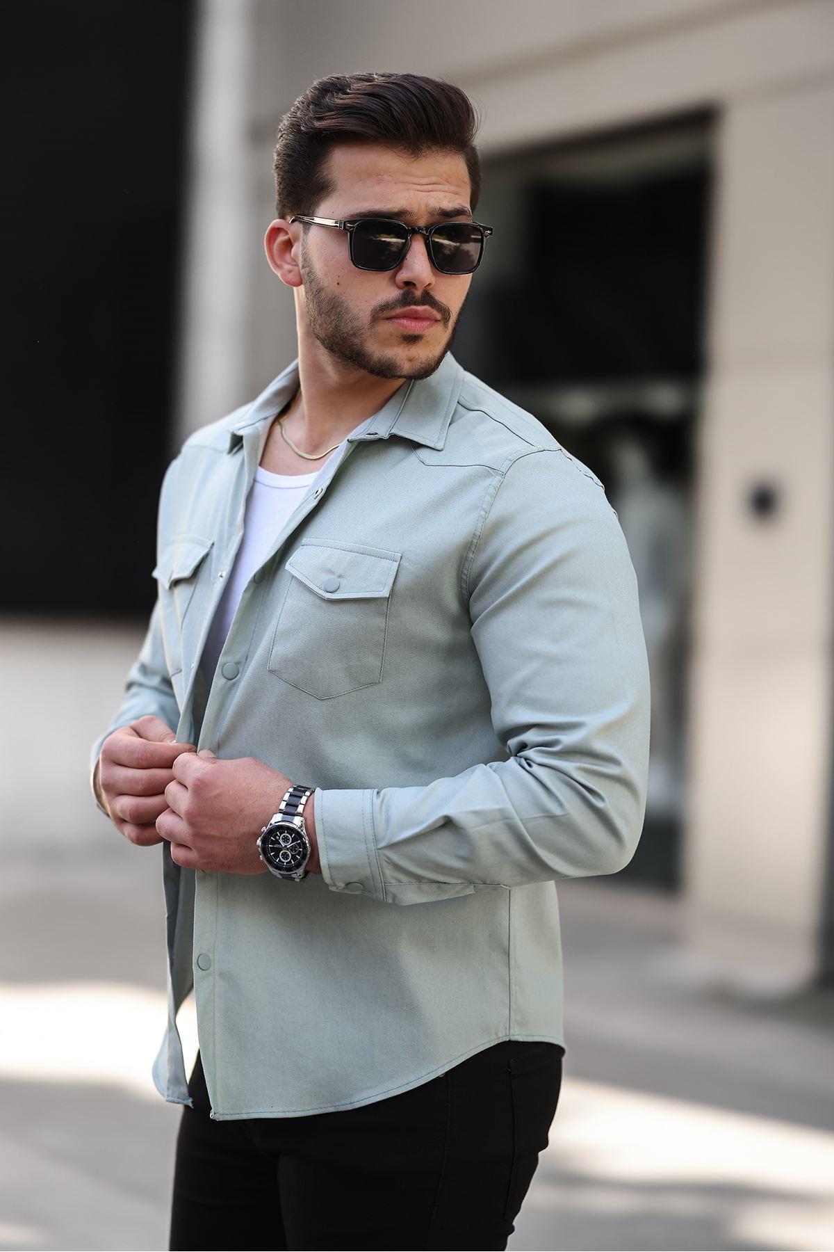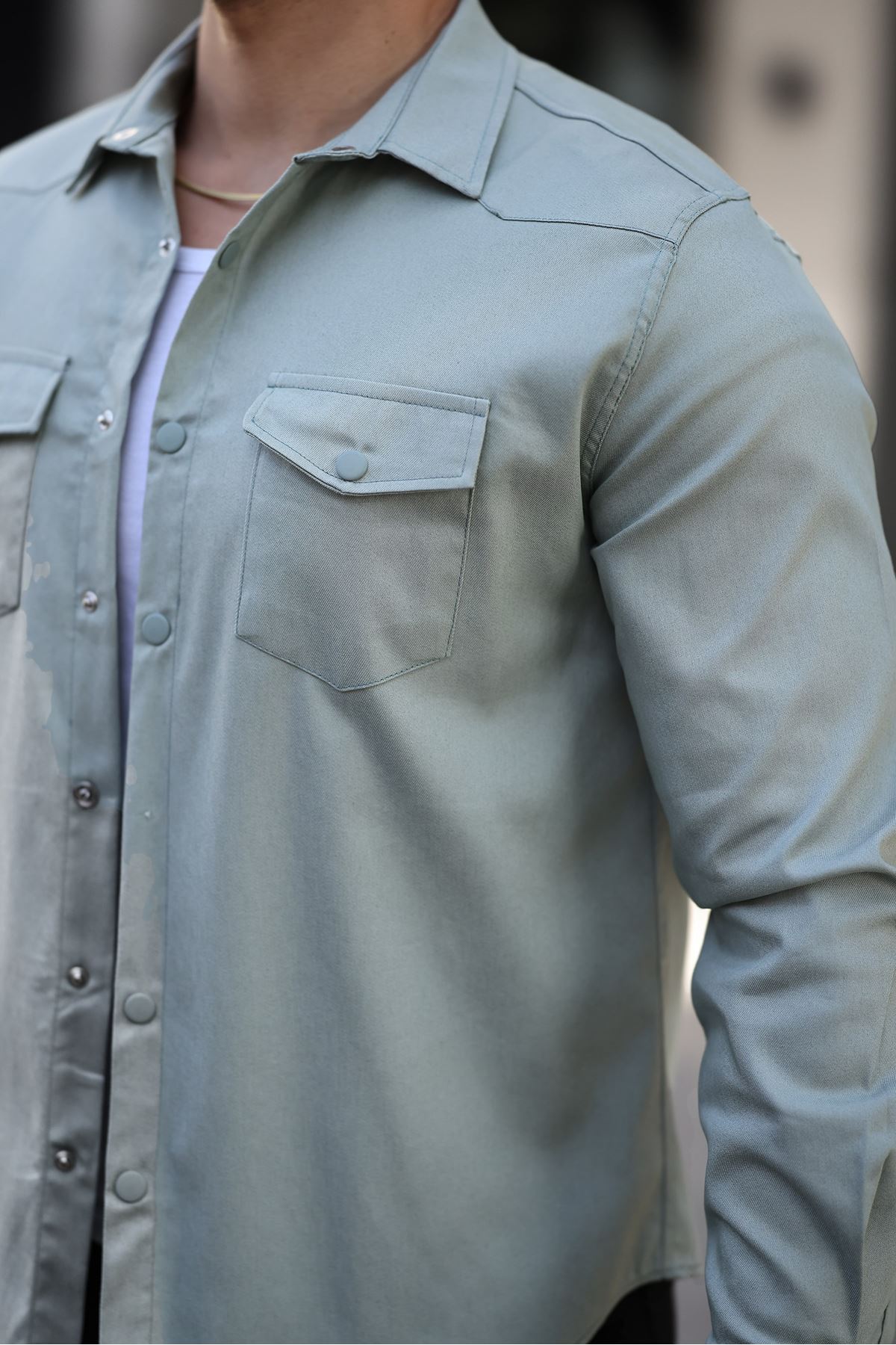 Erkek Kapak Cepli Çıtçıtlı Gömlek SU YEŞİLİ
