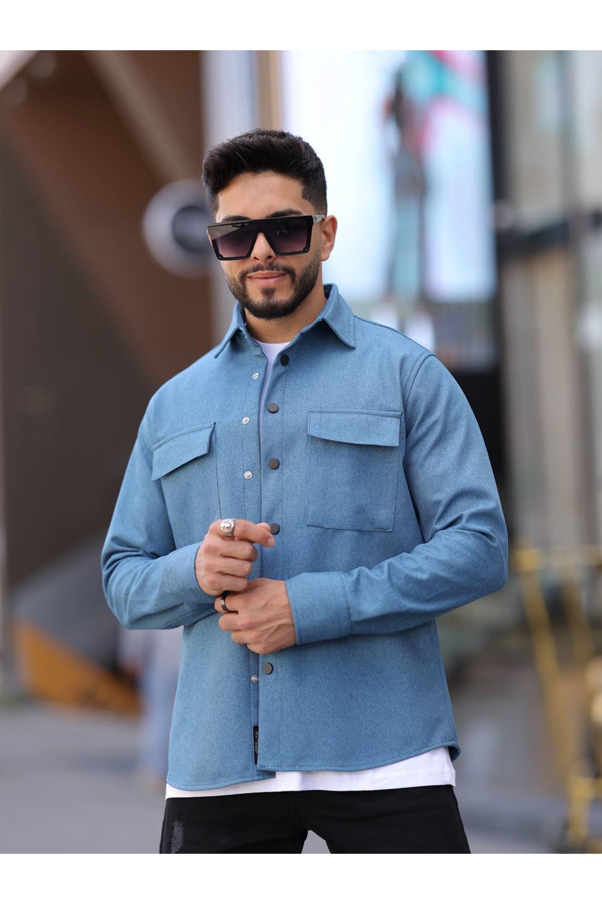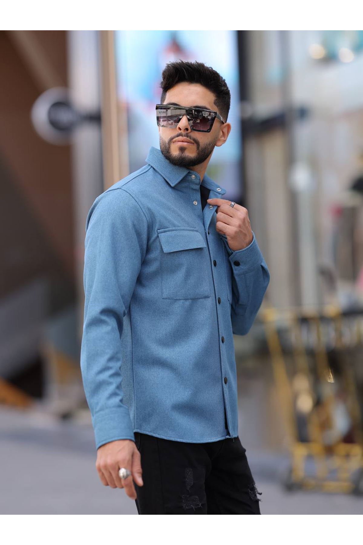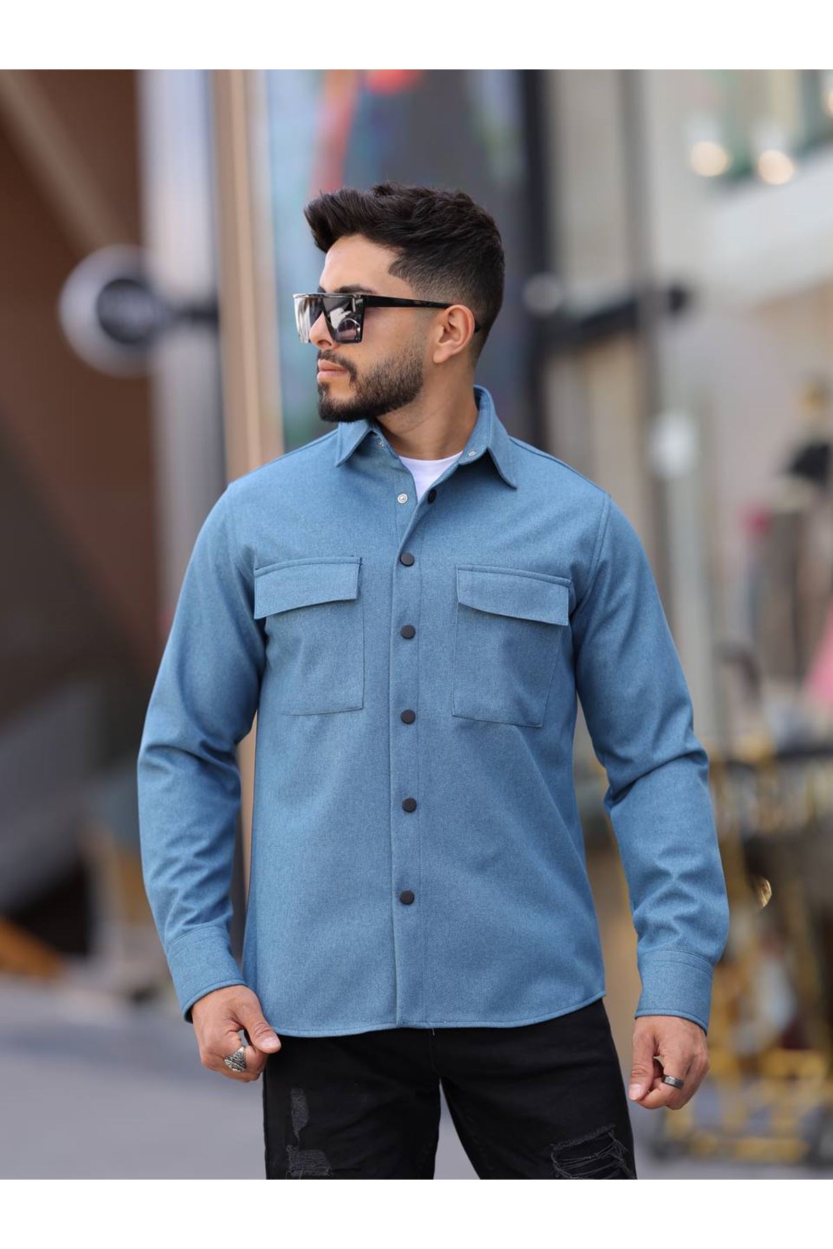Erkek Kaplamalı Yün Effectli Örme Gömlek İNDİGO