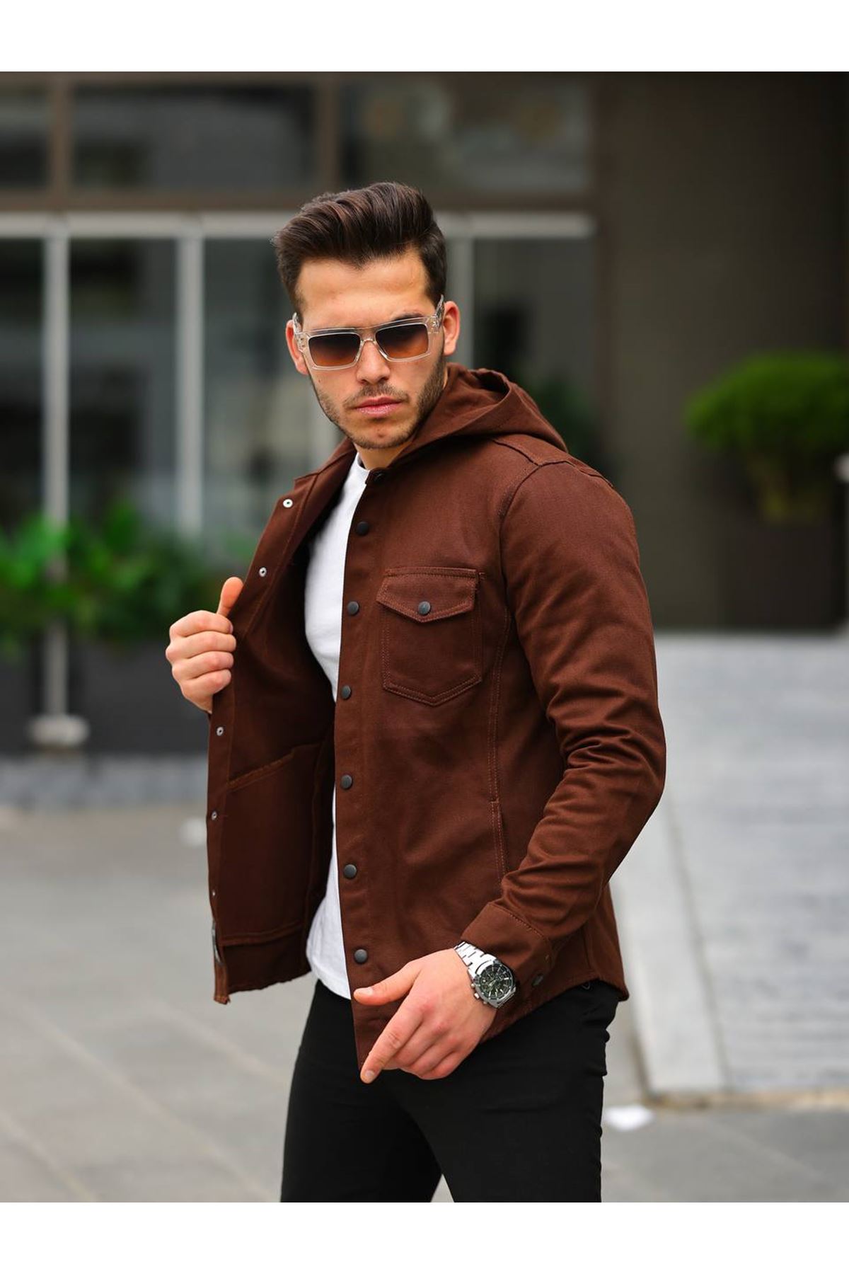 Erkek Kapüşonlu Çıt Çıt Düğme ( Rahat Kalıp ) Kot Gömlek K.KAHVE
