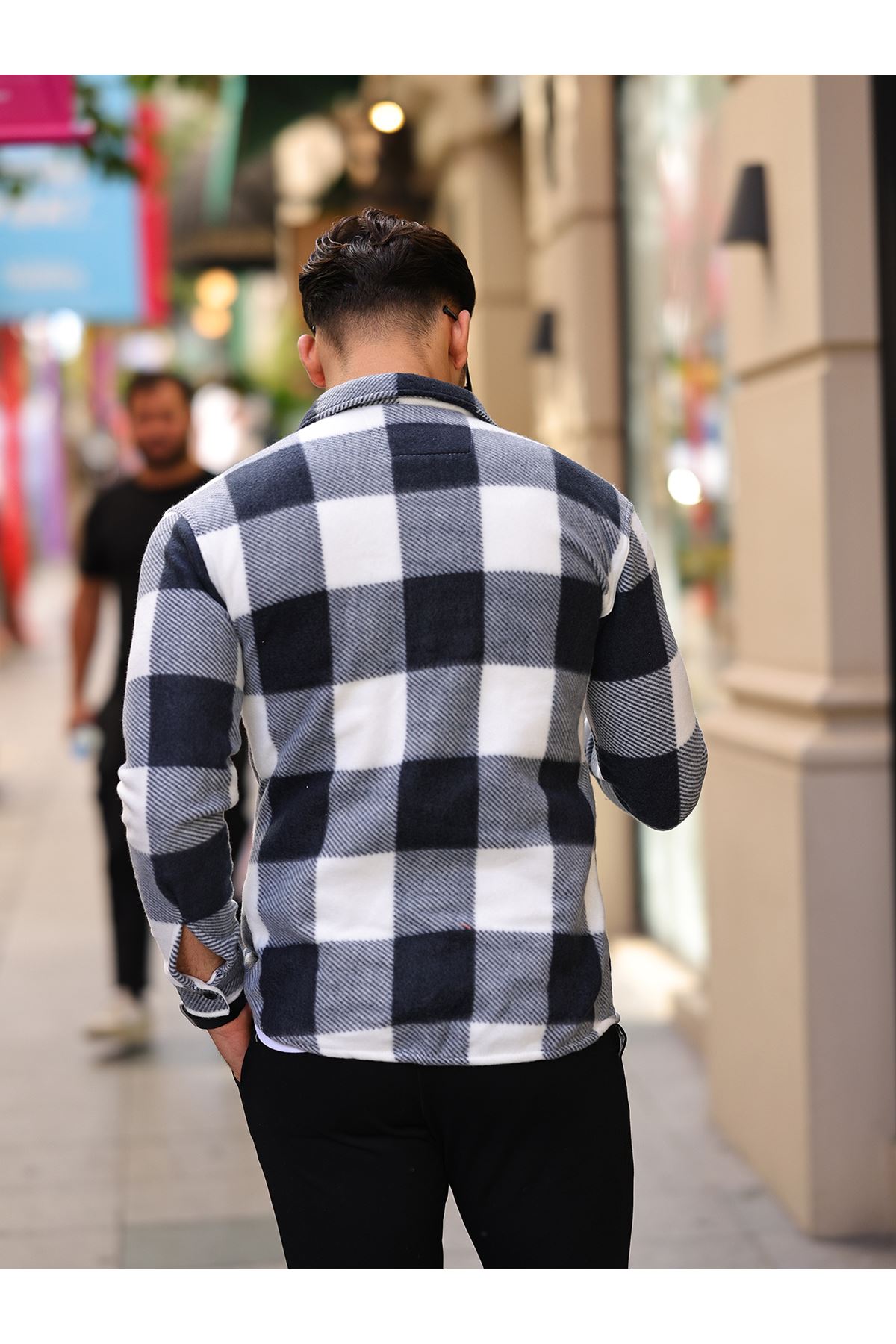 Erkek Kare Desen Polar Rahat Kalıp Gömlek SİYAH