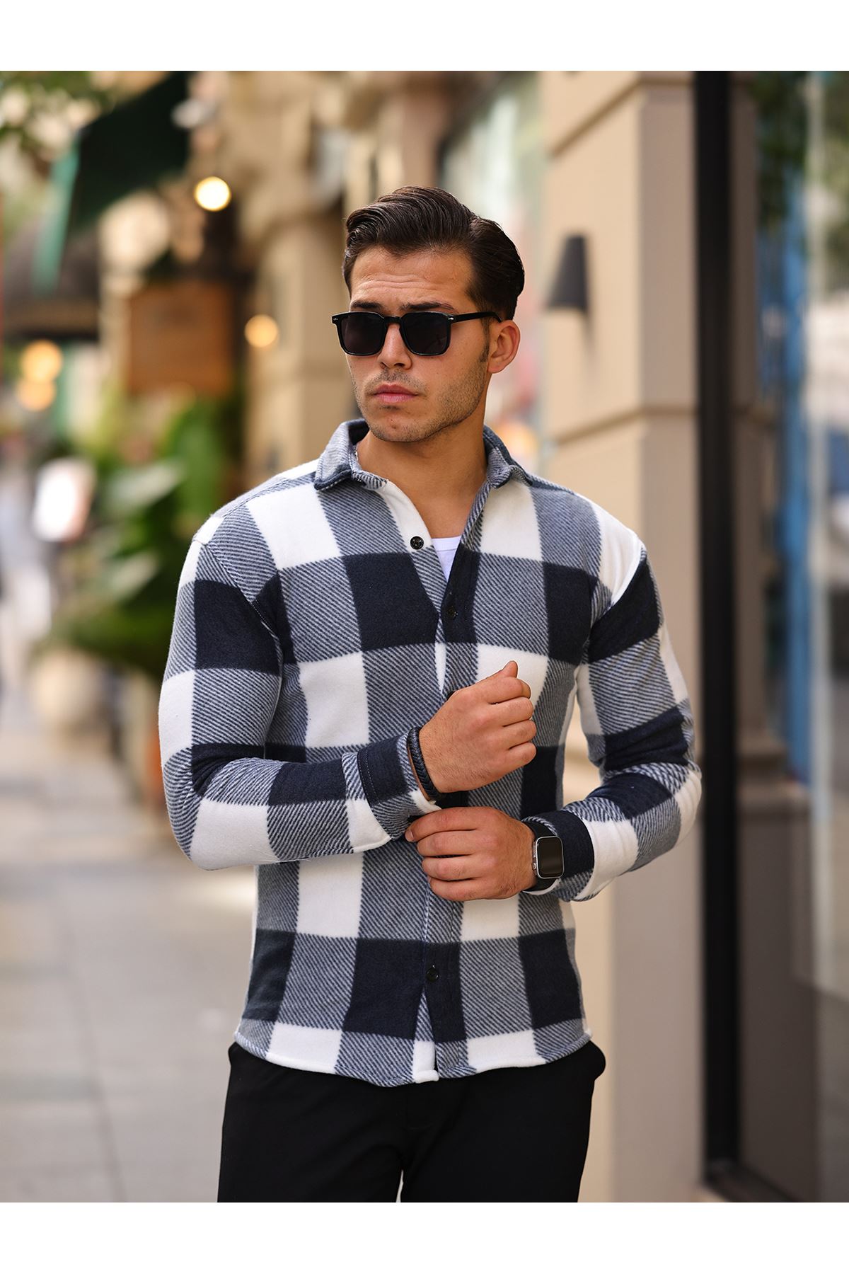 Erkek Kürklü Peluş Rahat Kalıp Gömlek İNDİGO