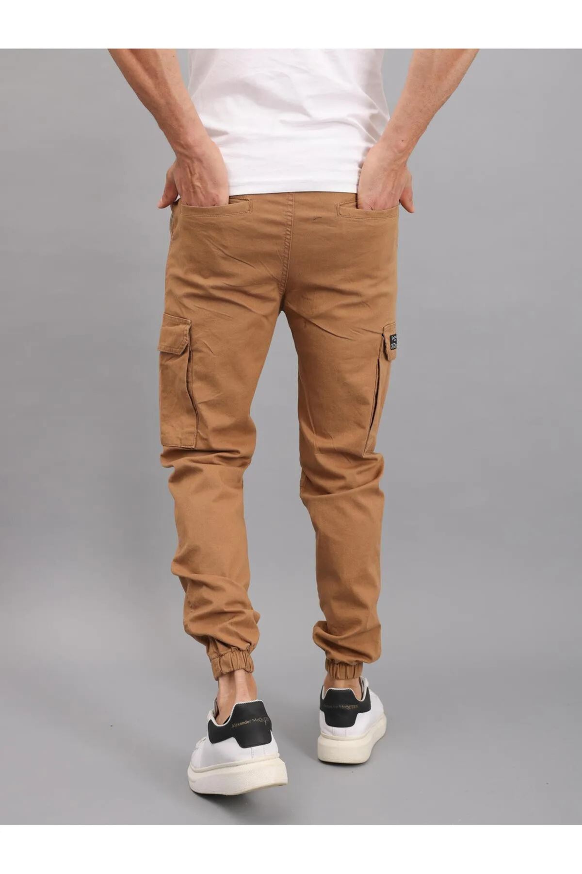Erkek Beli Lastikli Kargo Cep Kiremit Jogger Pantolon