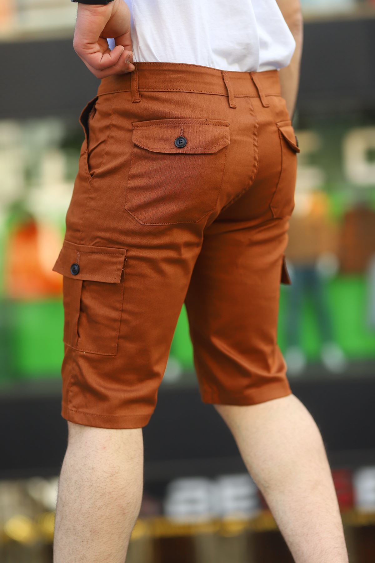 Erkek Beli Lastikli Dikiş Detaylı Kargo Cep Kapri Şort VİZON