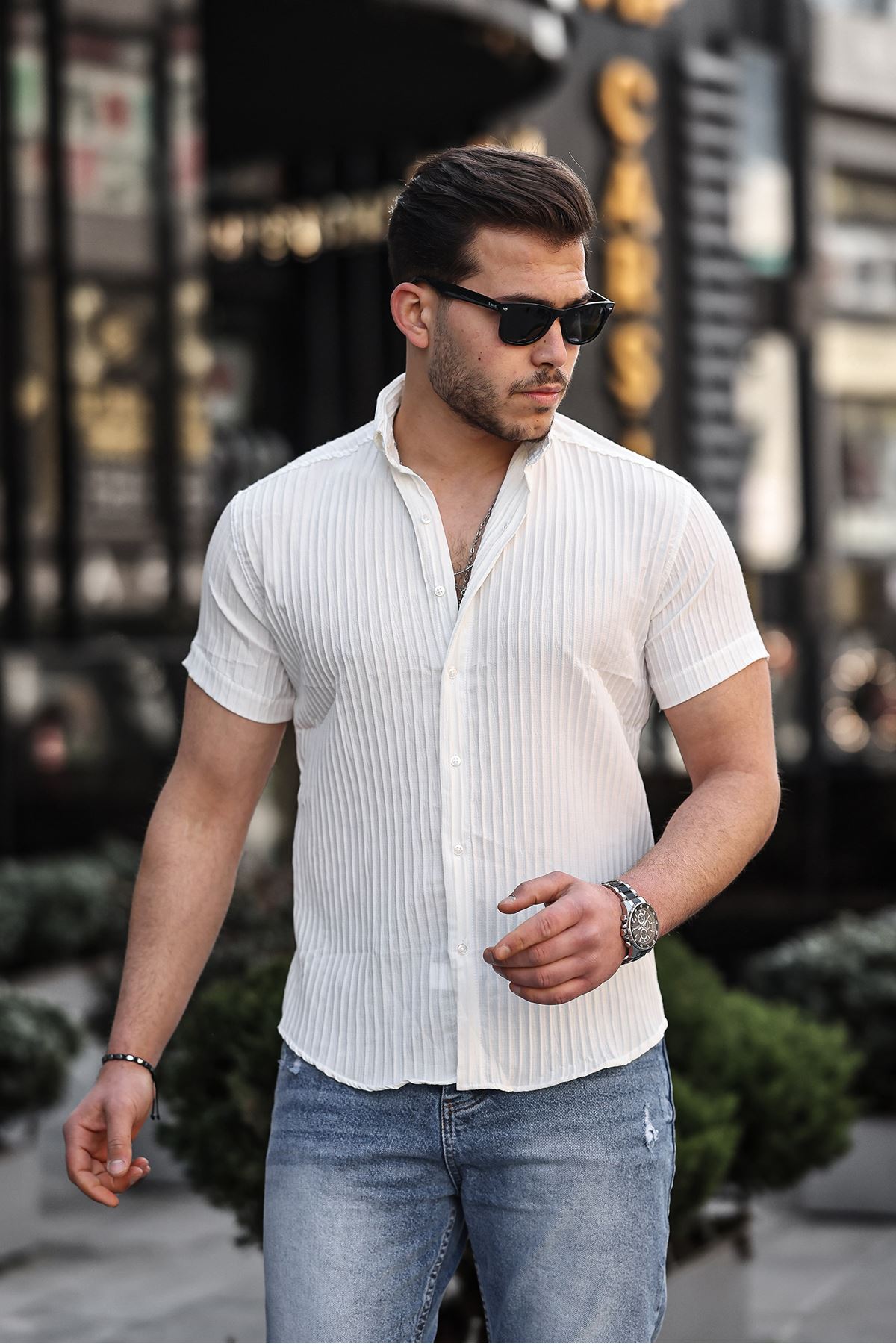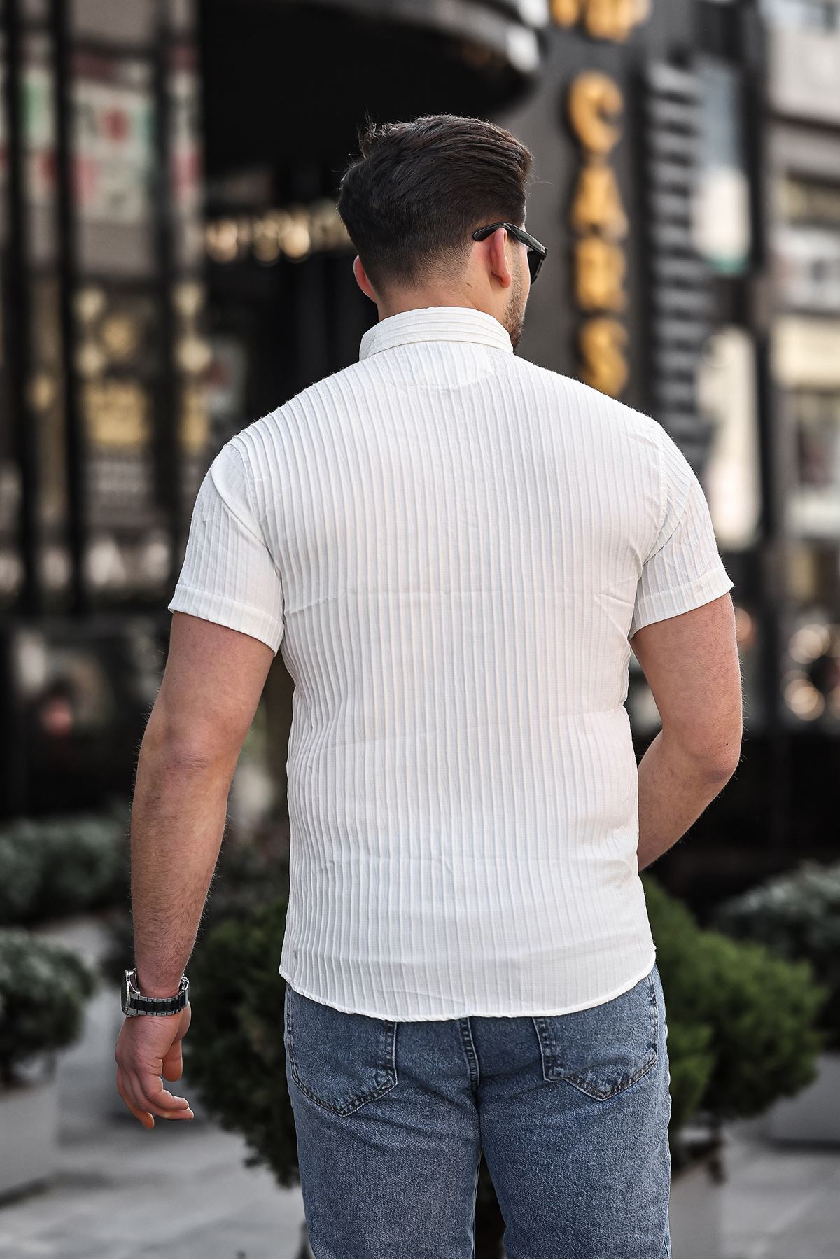 Erkek Kendinden Çizgi Desenli Gömlek BEYAZ