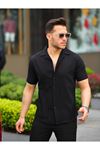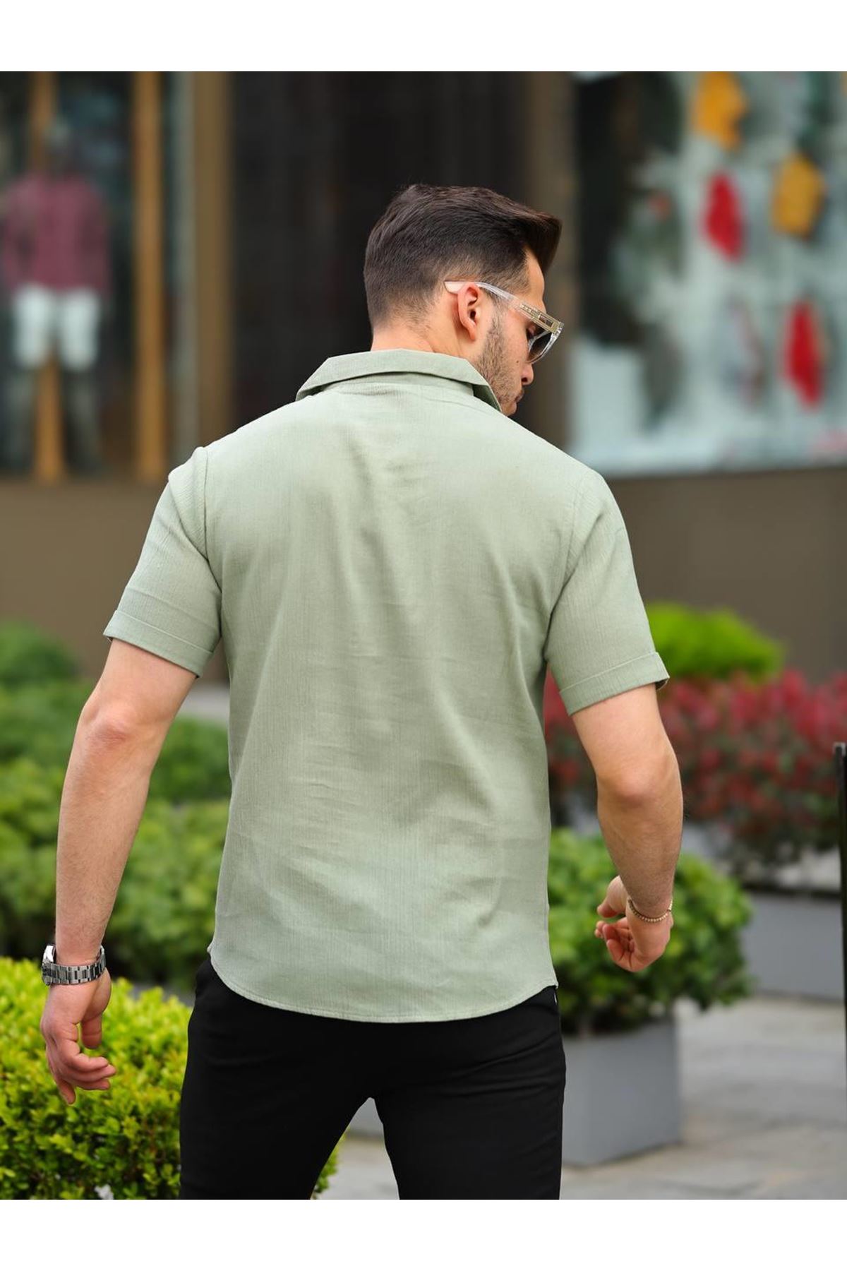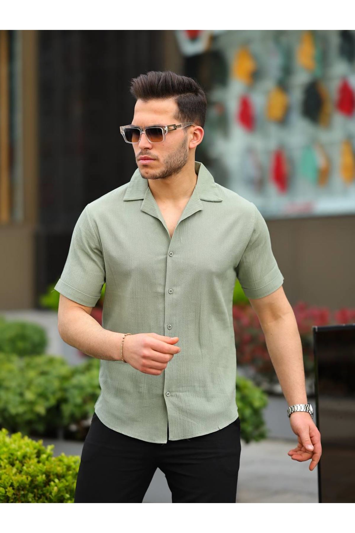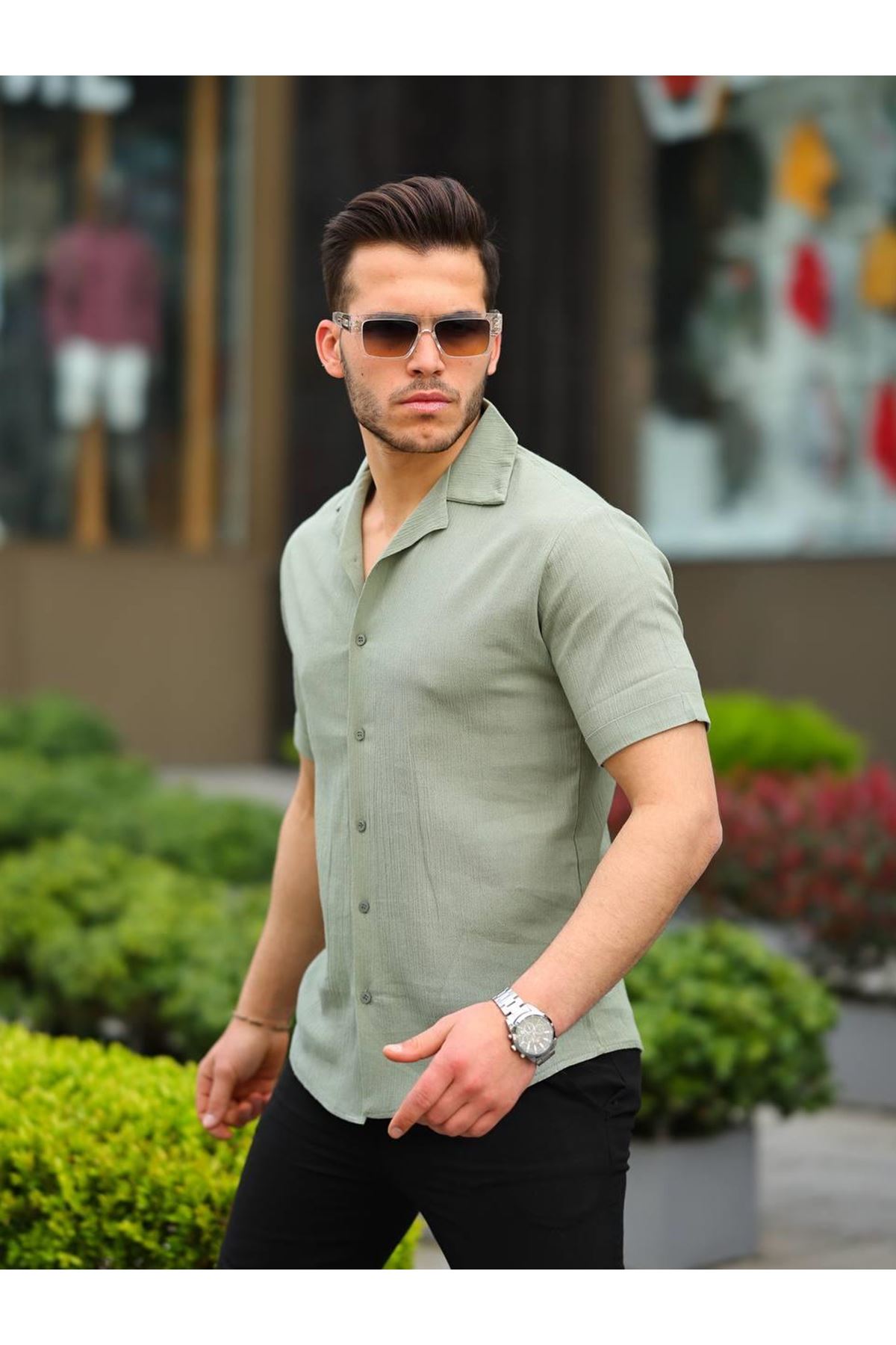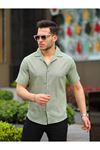 Erkek Keten Kumaş Kısa Kollu Şal Yaka Gömlek HAKİ