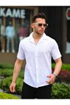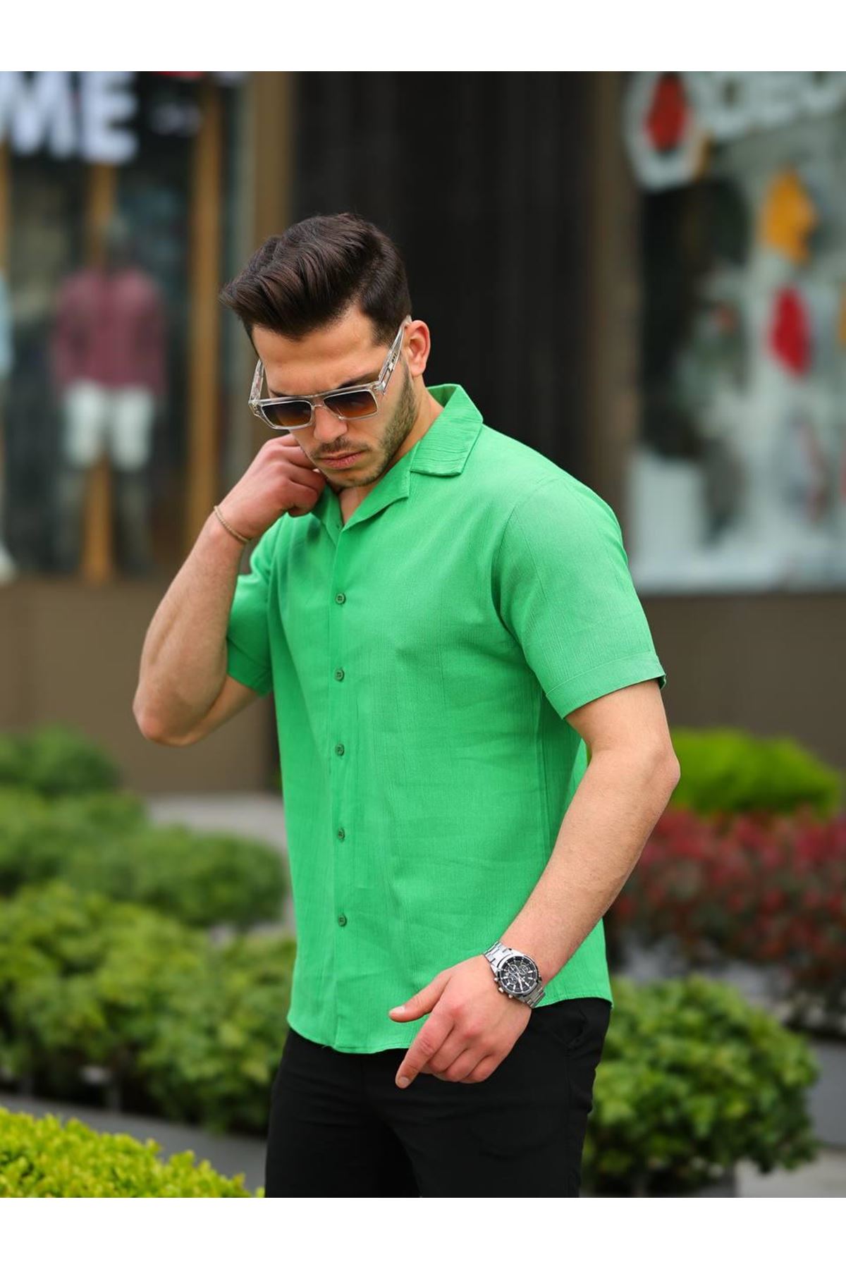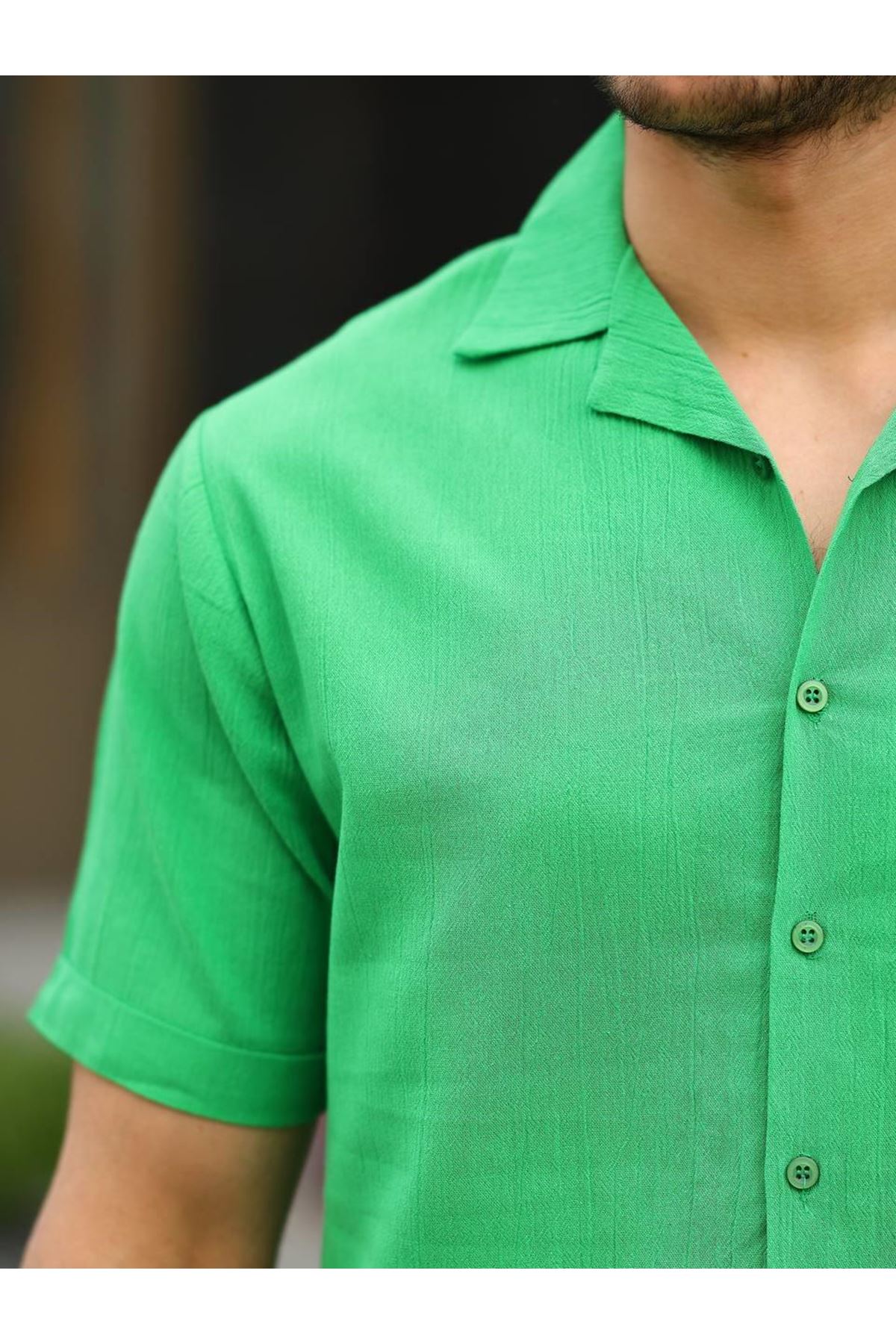 Erkek Keten Kumaş Kısa Kollu Şal Yaka Gömlek YEŞİL