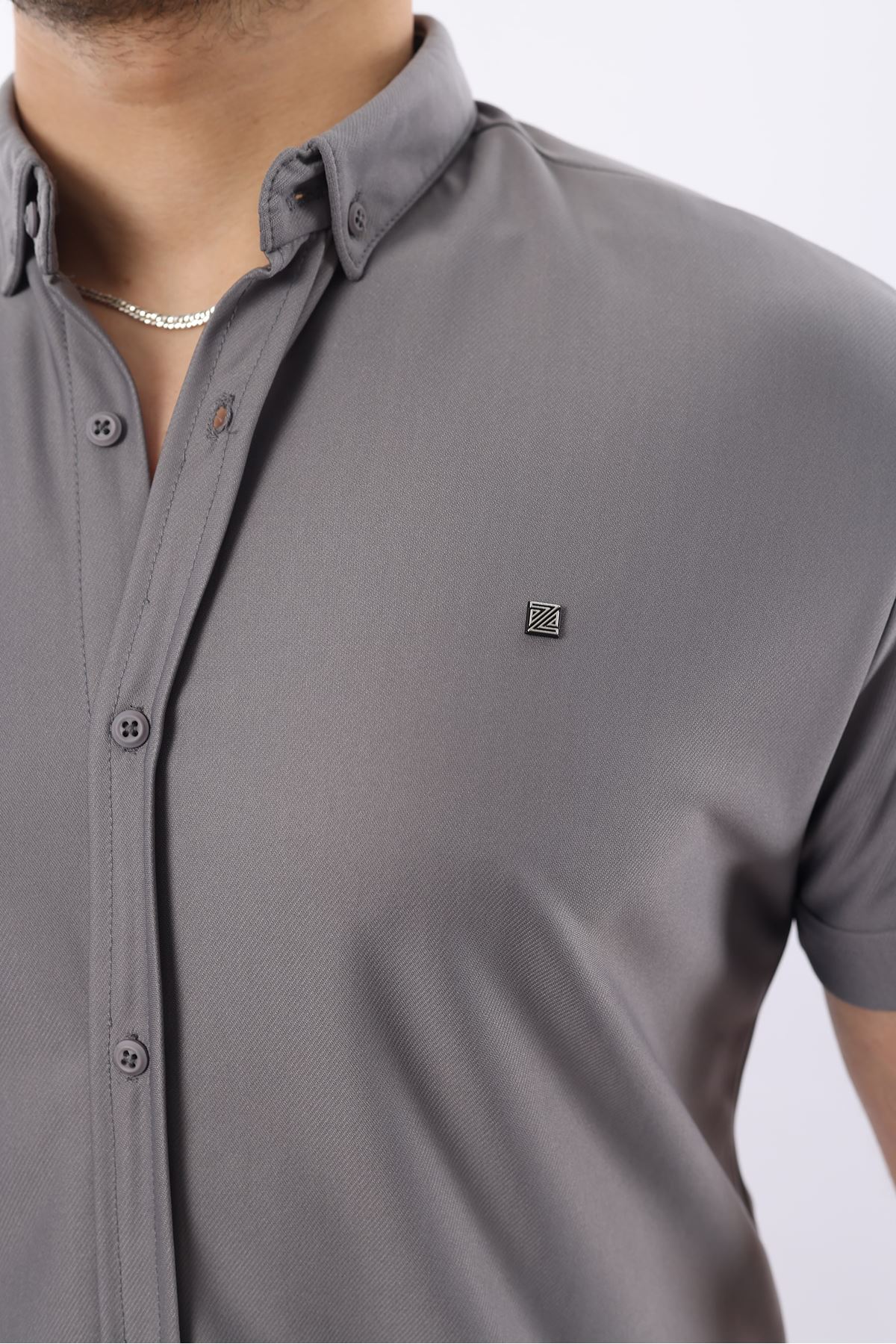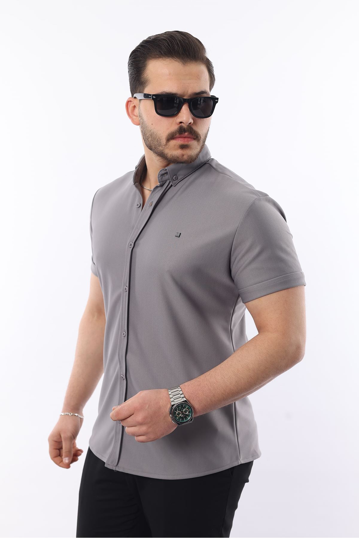 Erkek Kısa Kollu Slim Fit Yazlık Basic Şık Gömlek K.GRİ