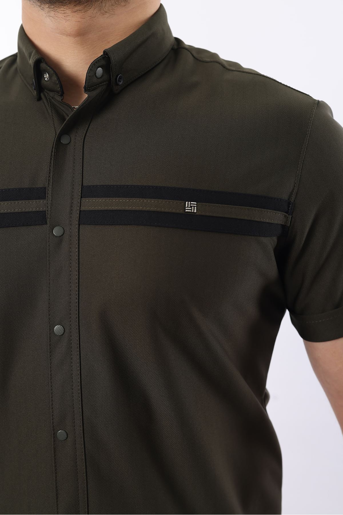 Erkek Kısa Kollu Slim Fit Yazlık Çift Çizgili Gömlek