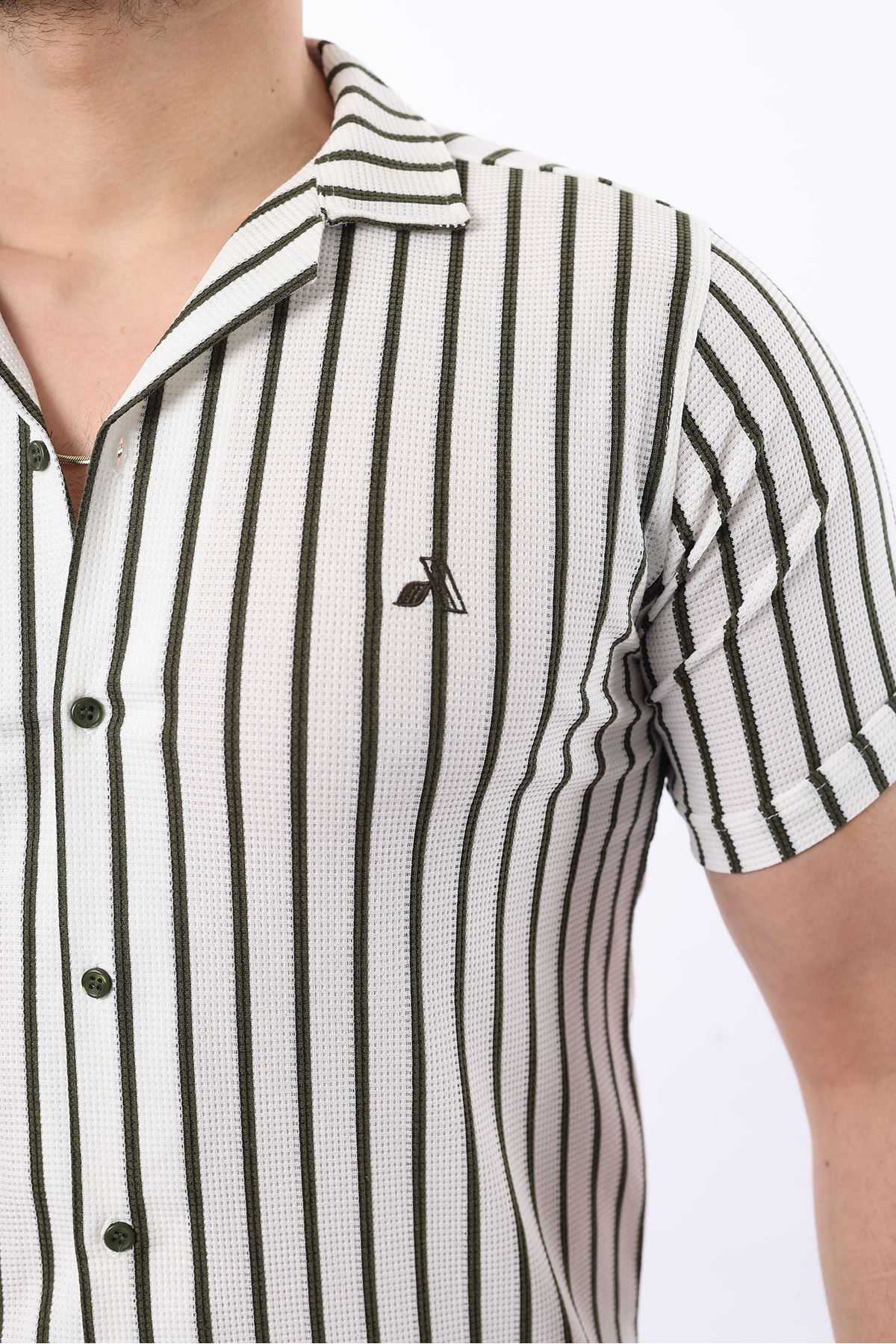 Erkek Kısa Kollu Slim Fit Yazlık Çizgili Gömlek HAKİ