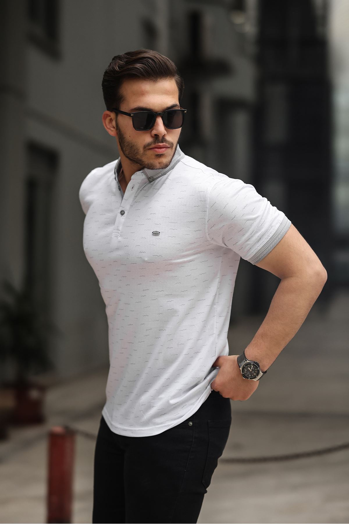 Erkek Kıvrılmaz Polo Yaka Cepsiz Slim Fit Desenli T-Shirt GRİ