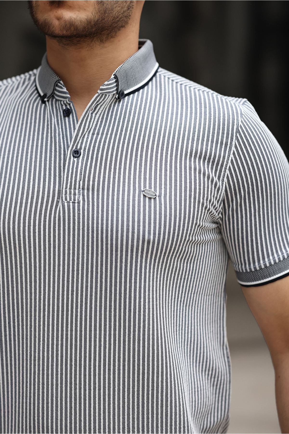 Erkek Kıvrılmaz Polo Yaka Slim Fit Çizgili T-Shirt LACİVERT