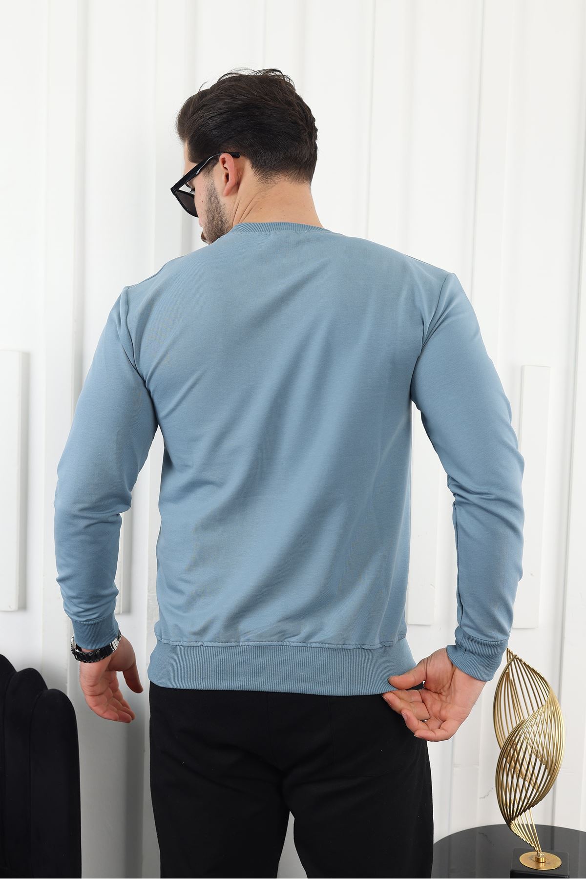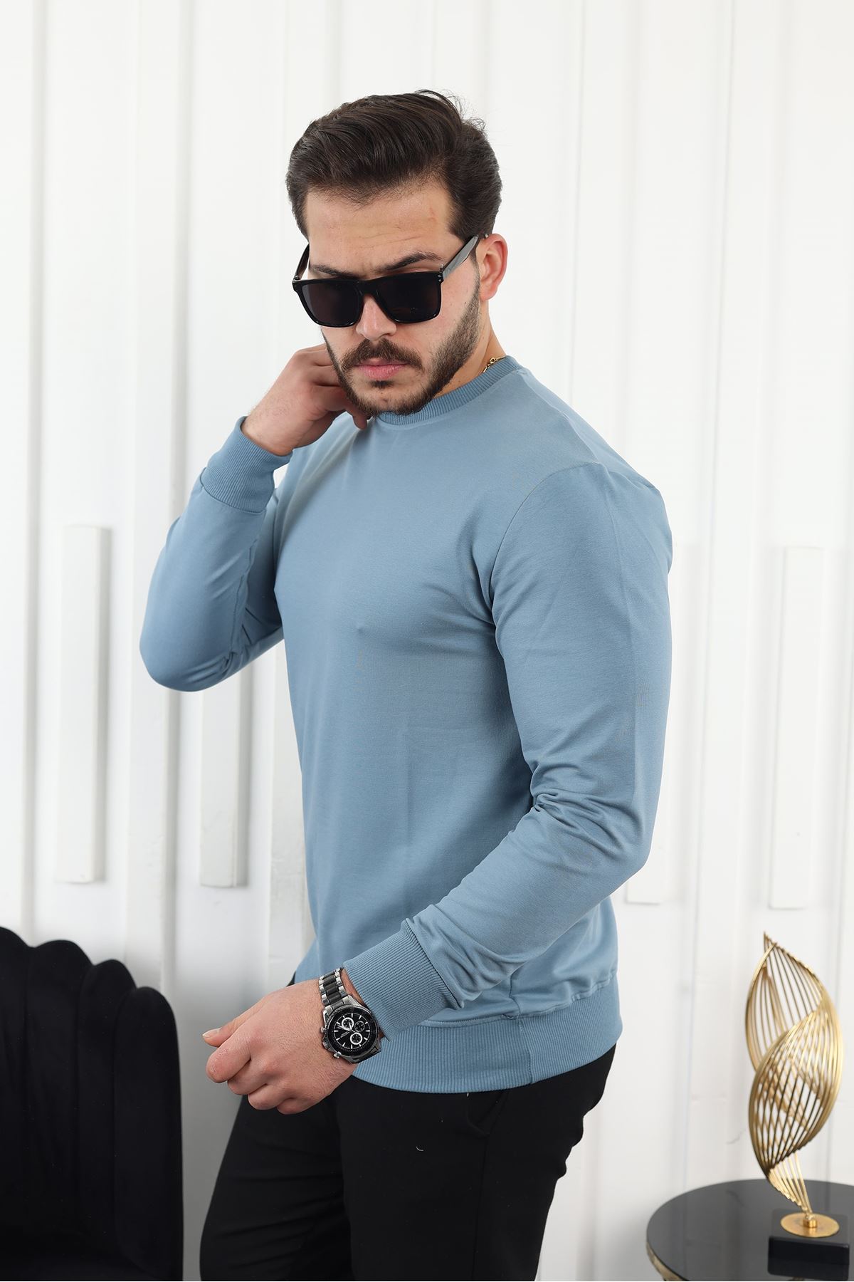 Erkek Kompakt Pamuklu Slim Fit Sweatshirt MAVİ