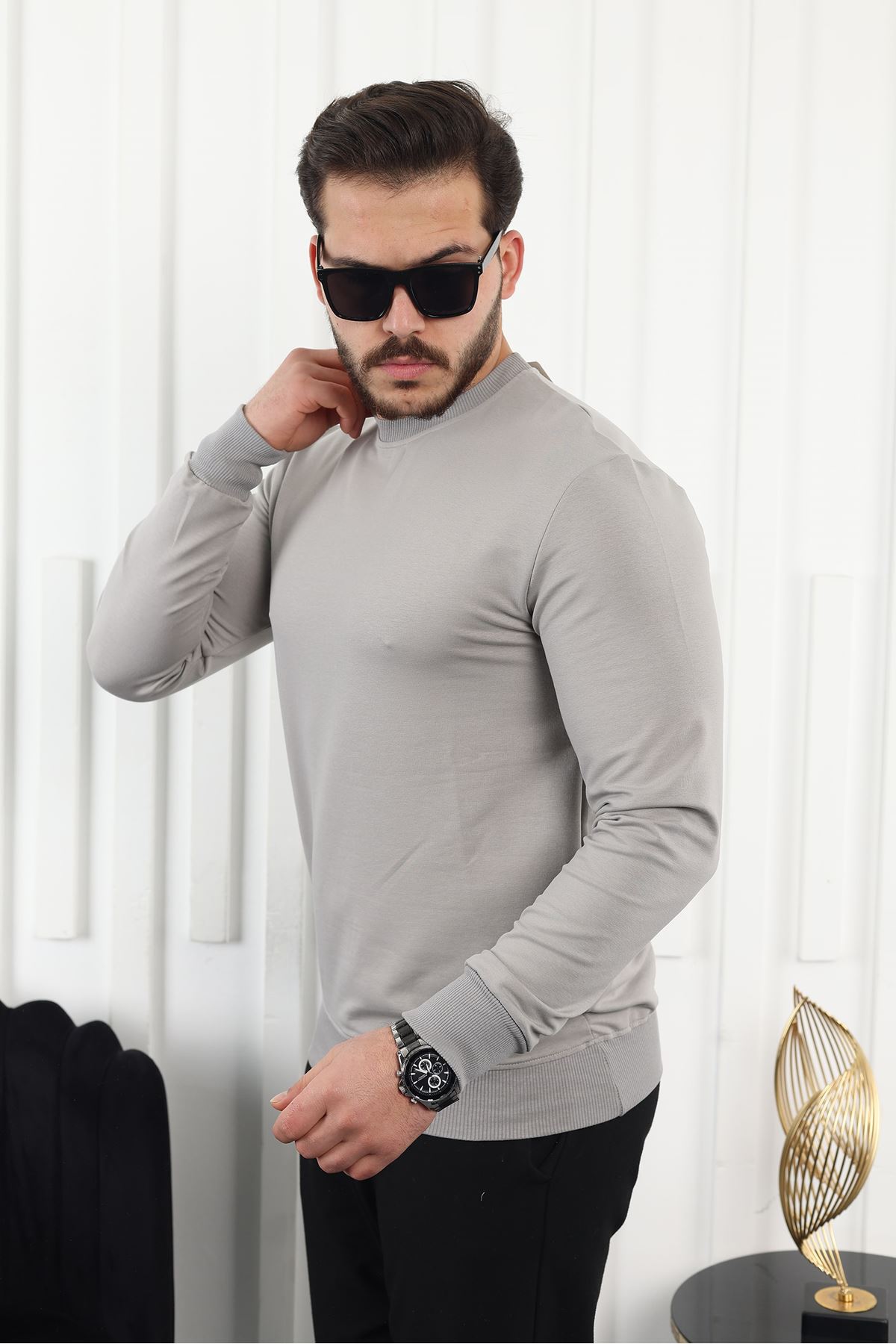 Erkek Kompakt Pamuklu Slim Fit Sweatshirt BEBE MAVİ