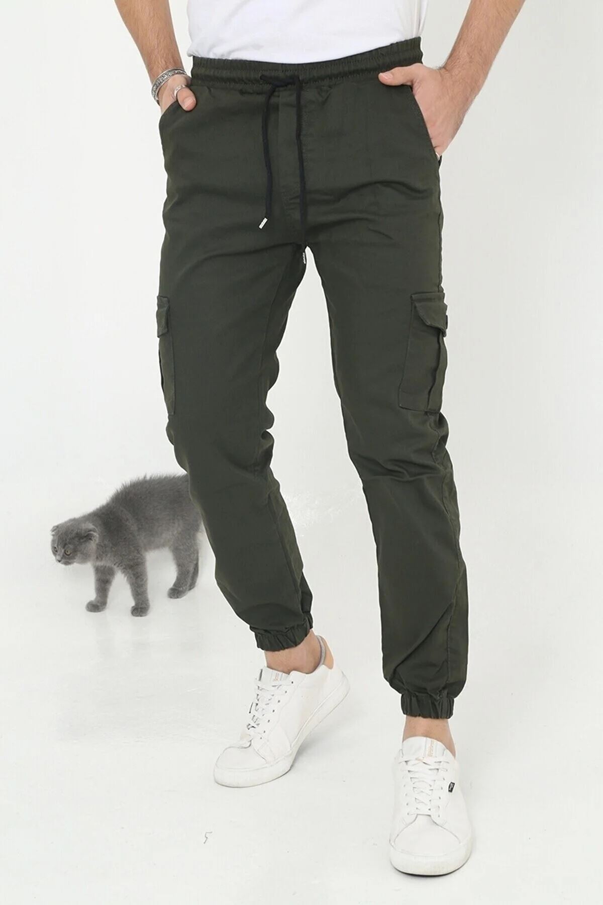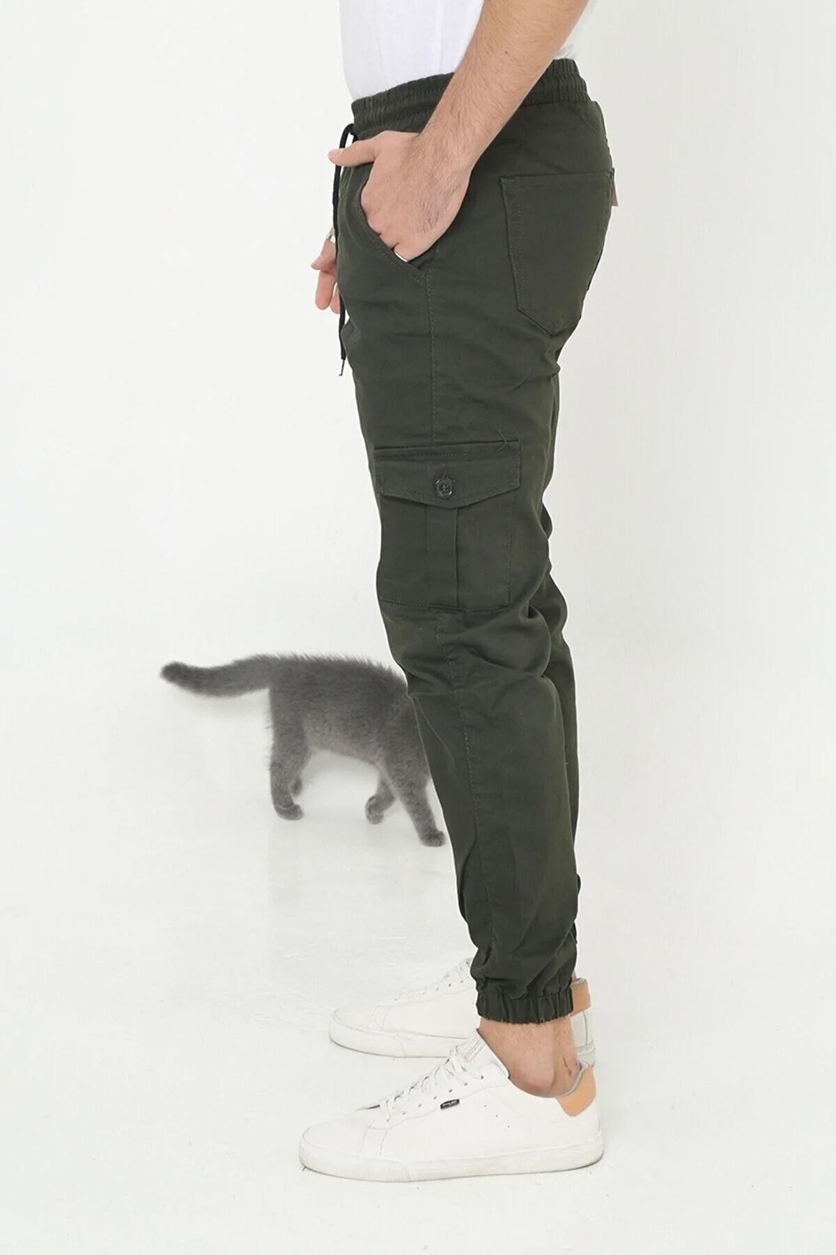 ERKEK KÖRÜKLÜ JOGGER PAÇA LASTİKLİ PANTOLON HAKİ