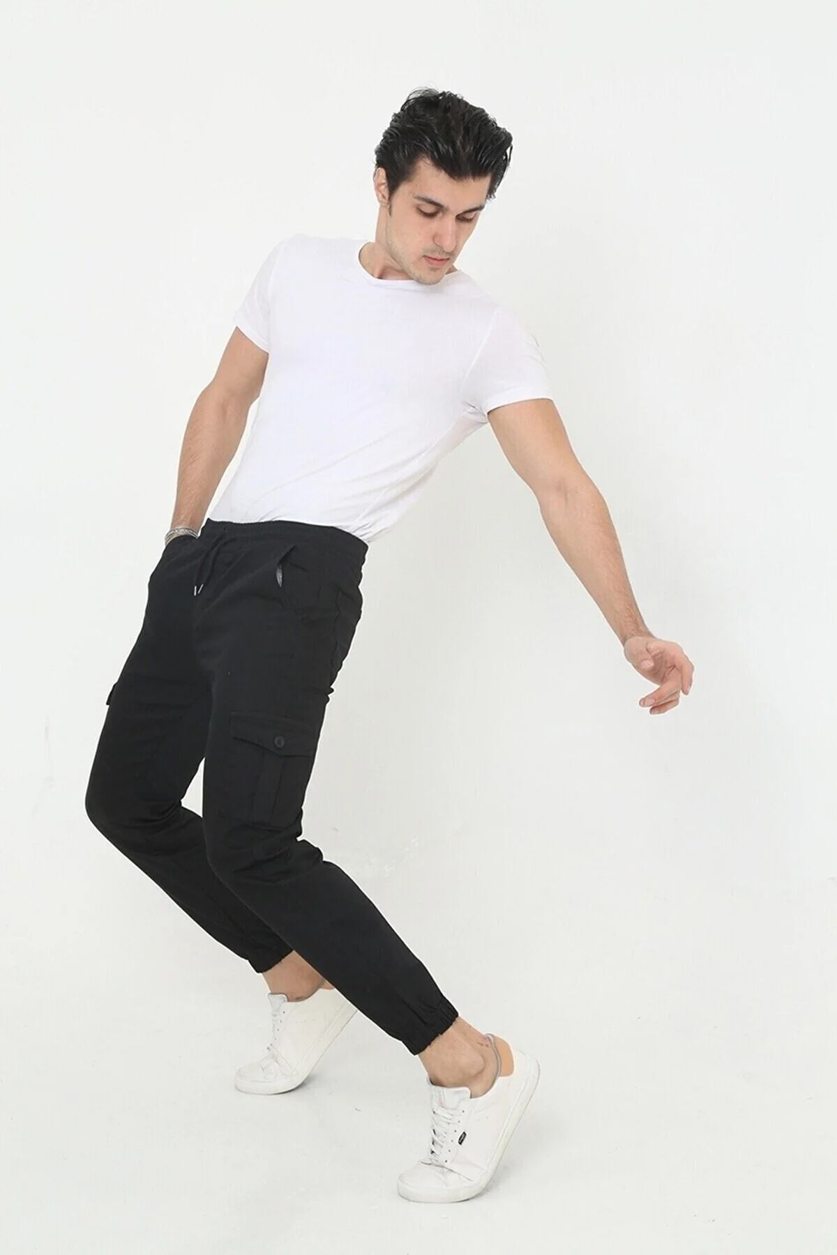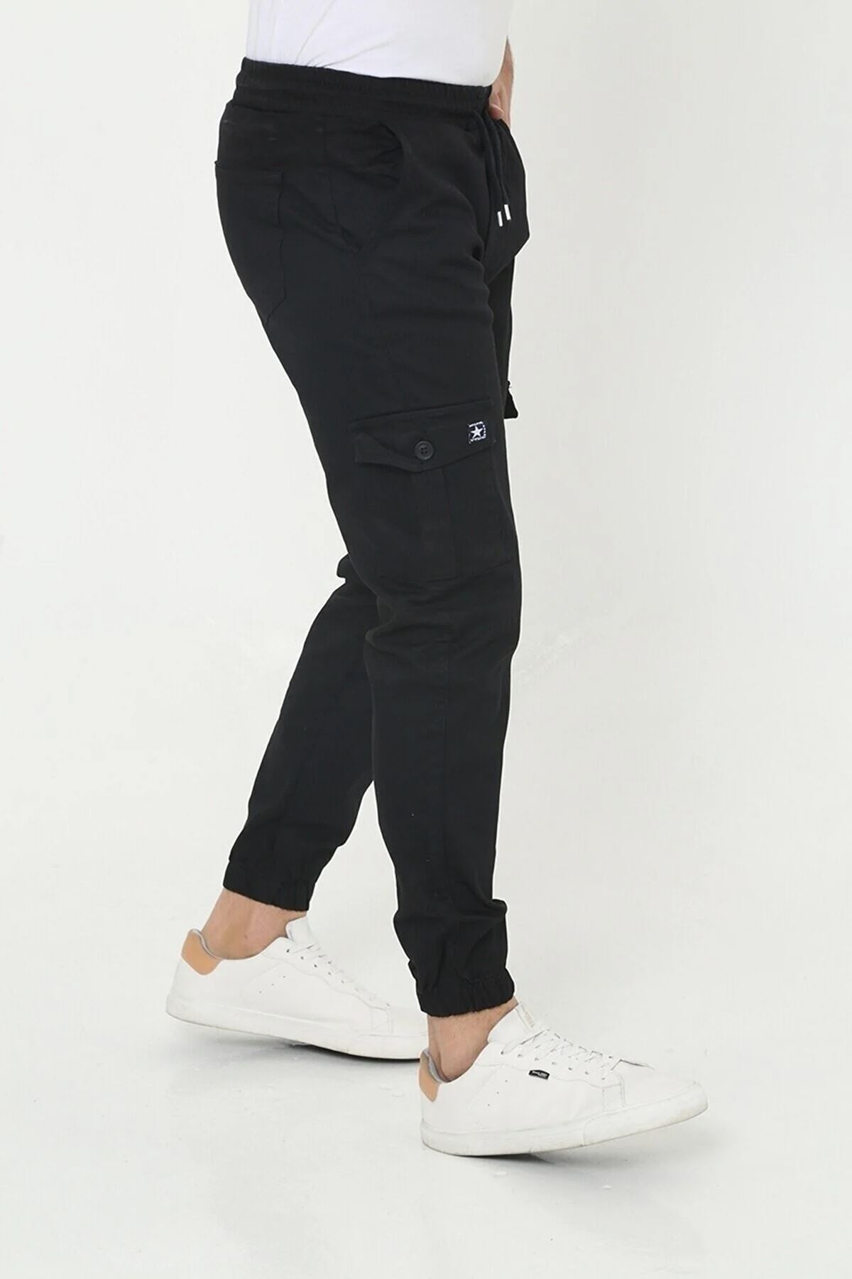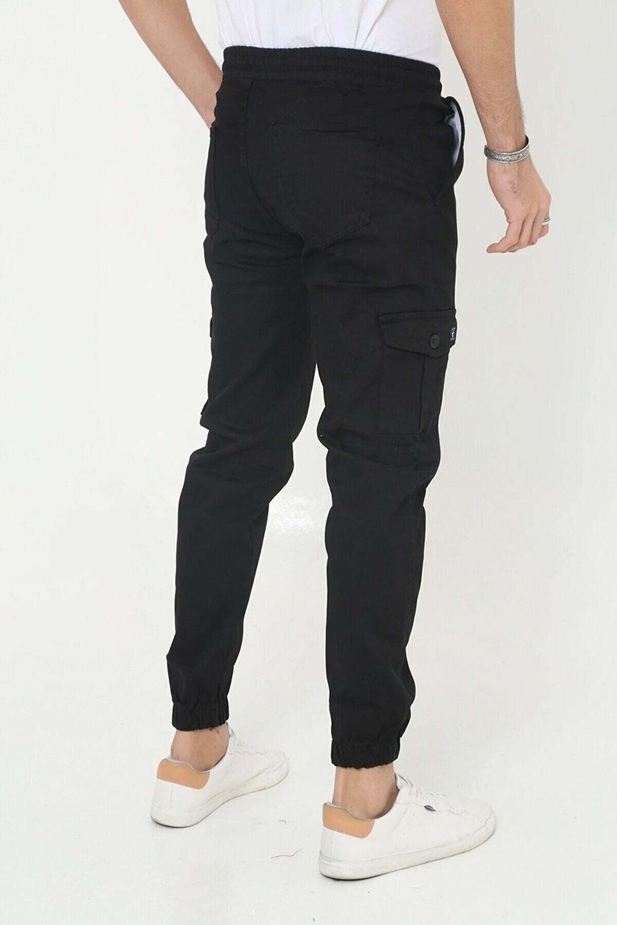 ERKEK KÖRÜKLÜ JOGGER PAÇA LASTİKLİ PANTOLON SİYAH