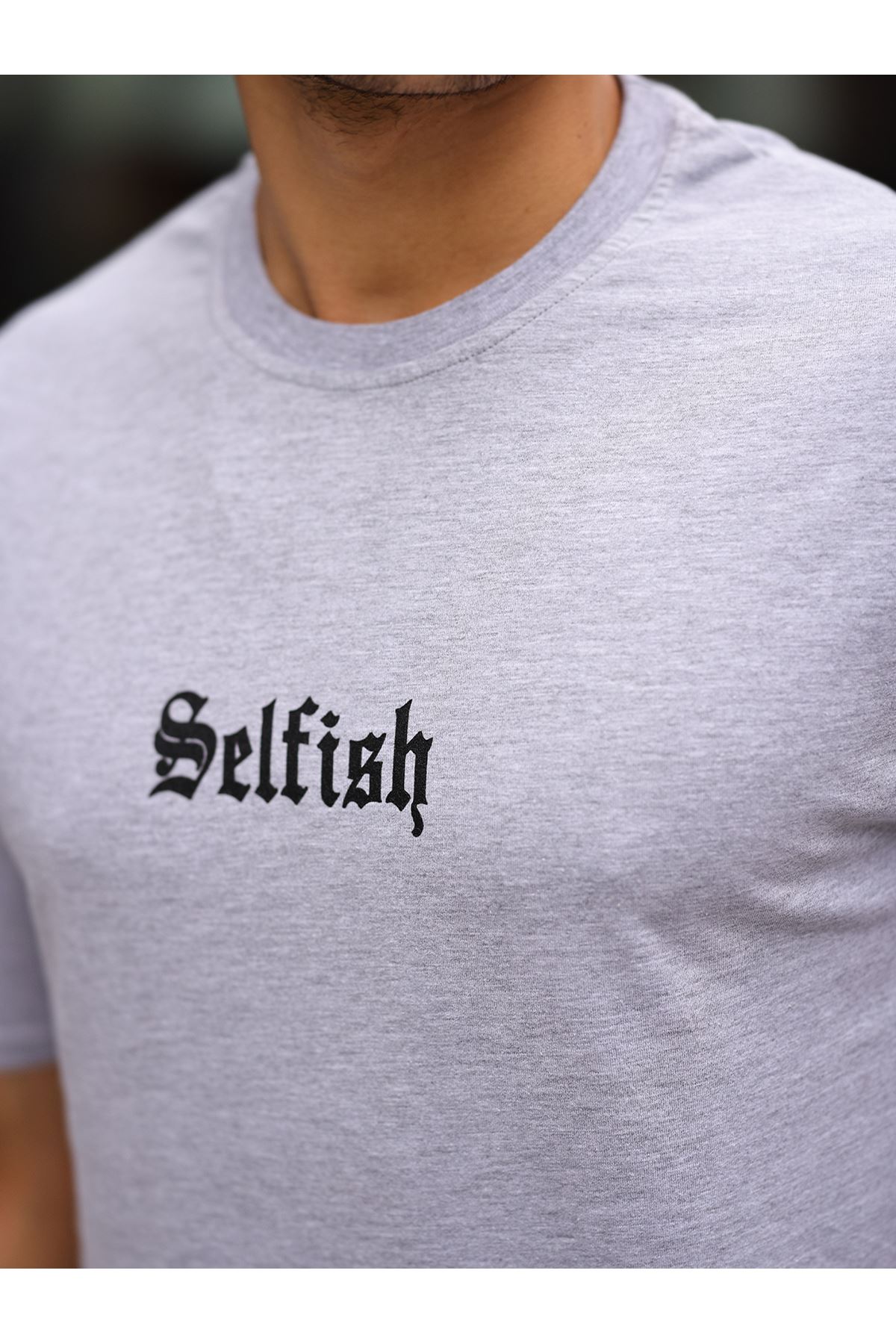 Erkek Oversize T-Shirt SELFİSH GRİ