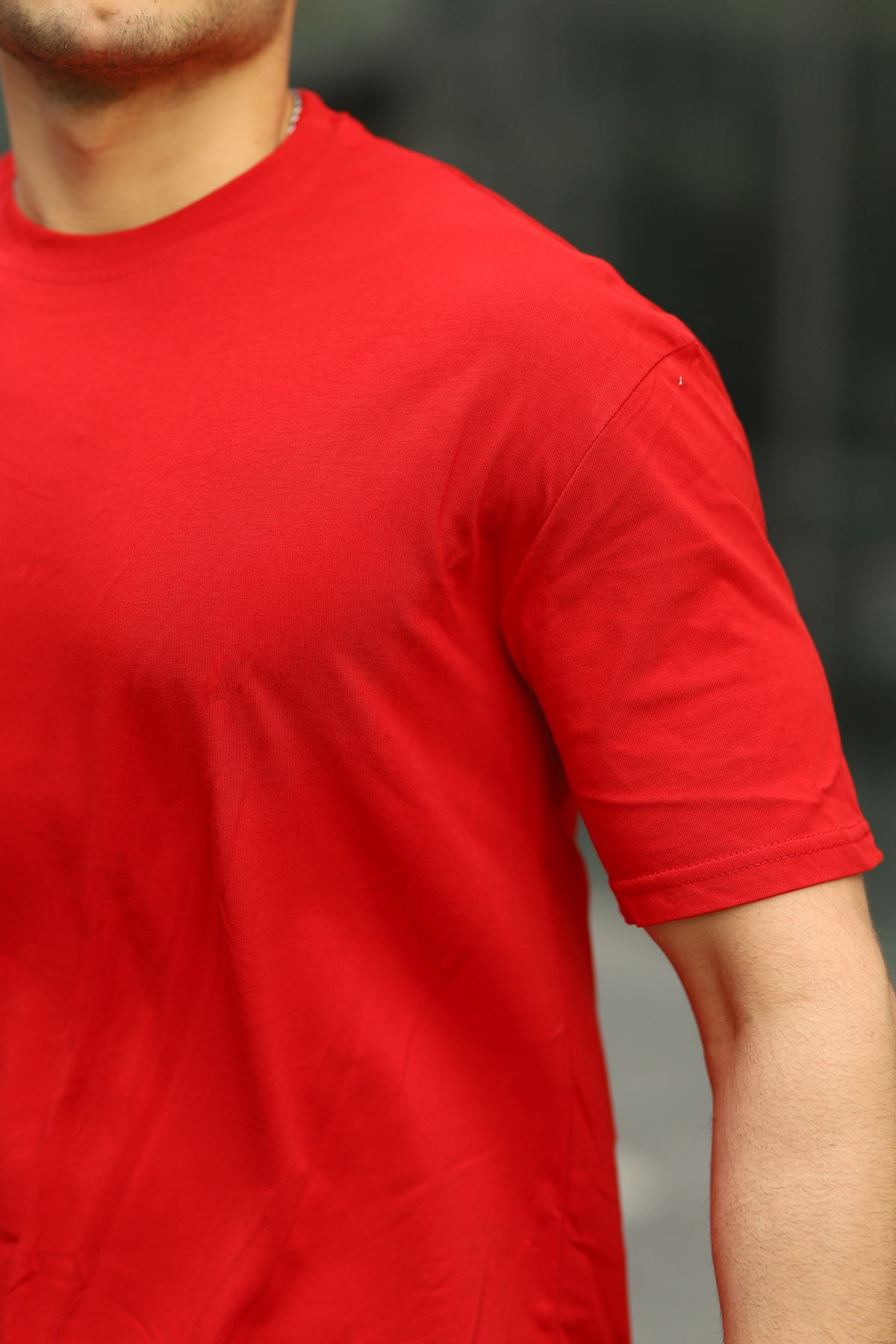 Erkek Oversize Baskısız Tişört KIRMIZI