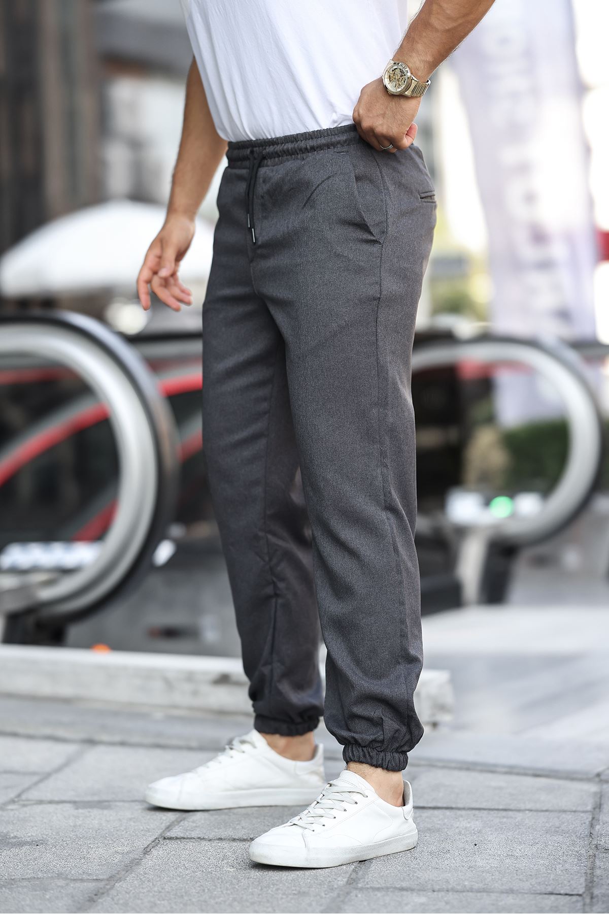 Erkek Dar Kalıp Lastikli Paça Jogger Pantolon FÜME