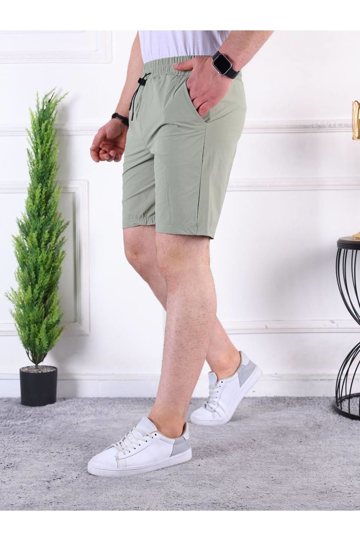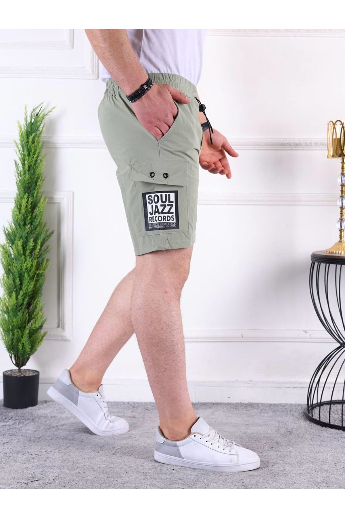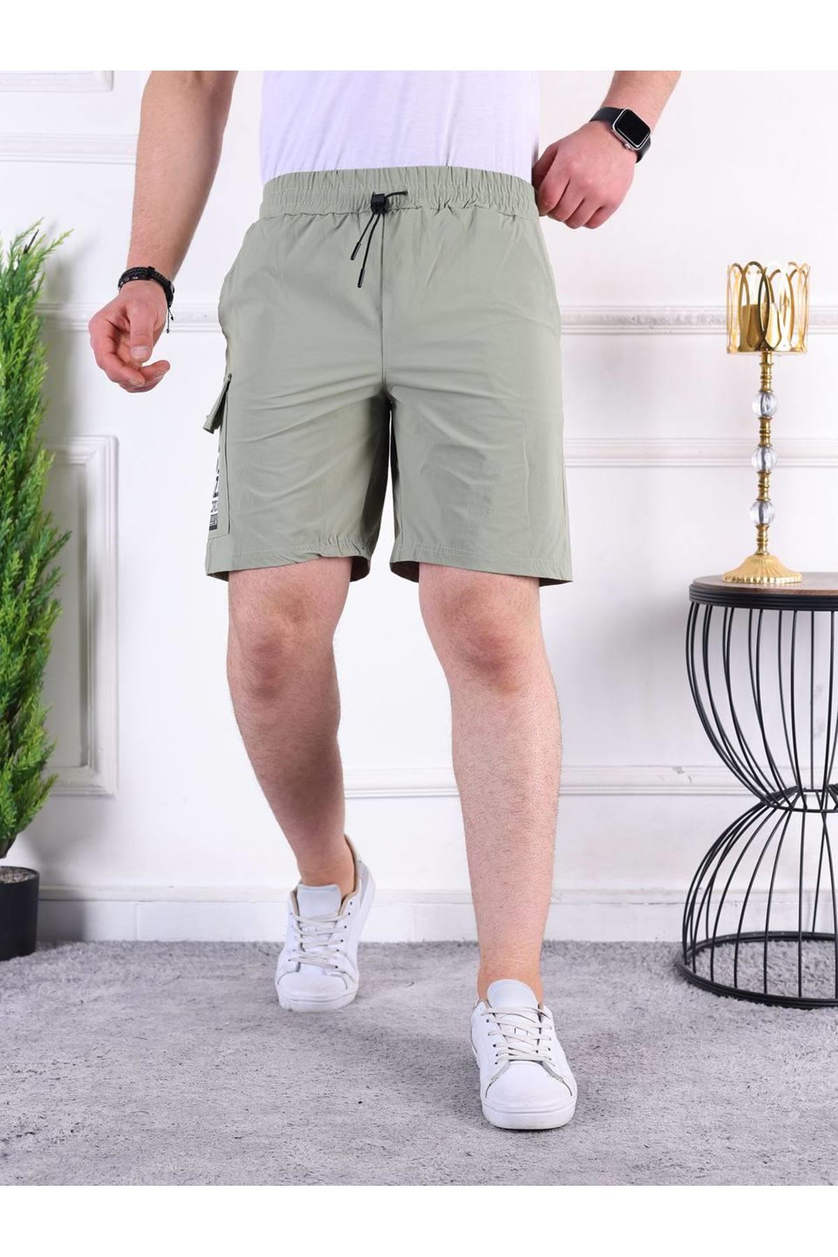 Erkek Paraşüt Kumaş Bel Lastikli Baskı Detaylı Kapri SU YEŞİLİ