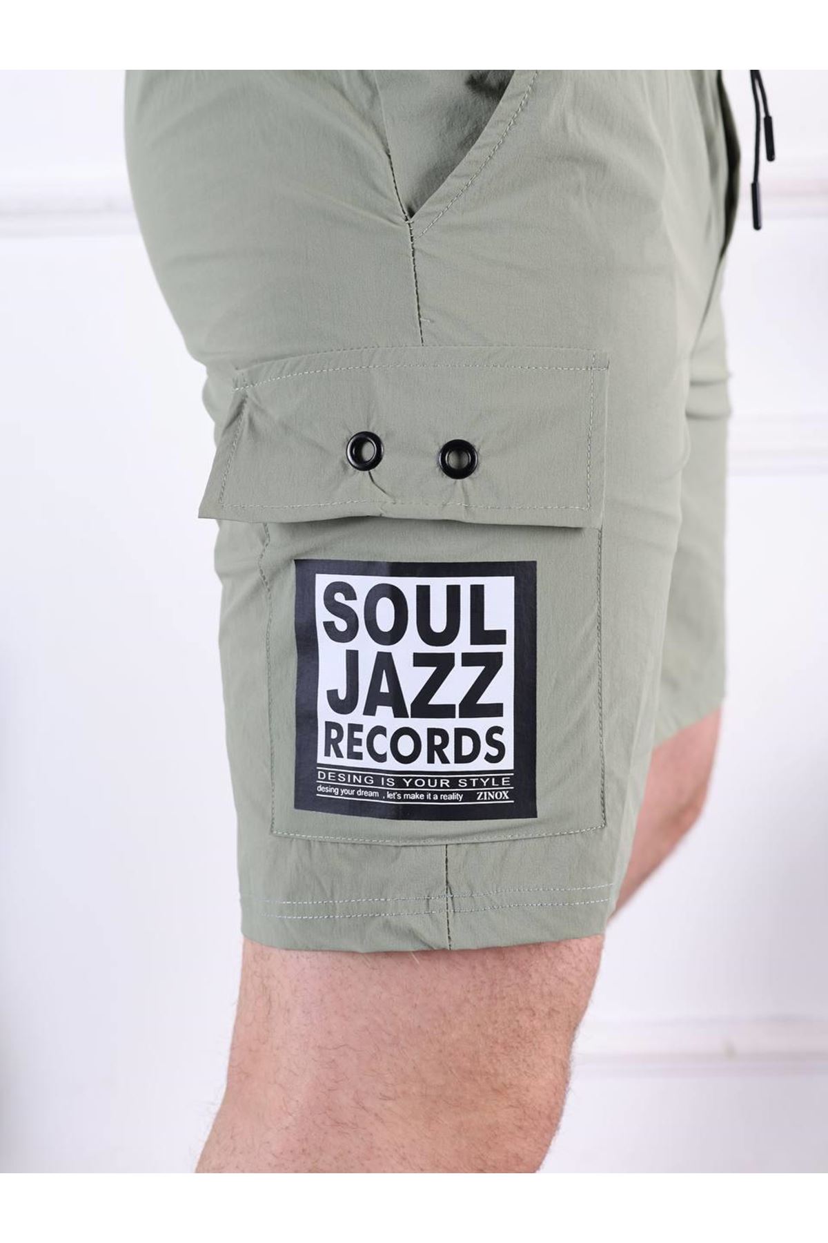 Erkek Paraşüt Kumaş Bel Lastikli Baskı Detaylı Kapri HAKİ
