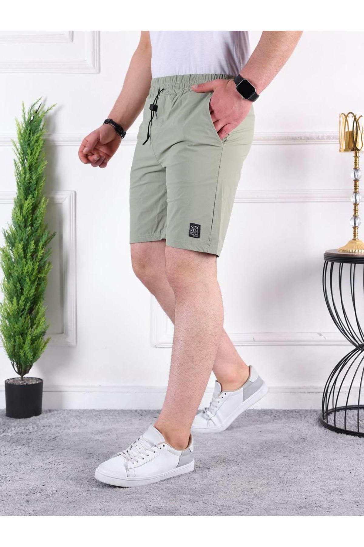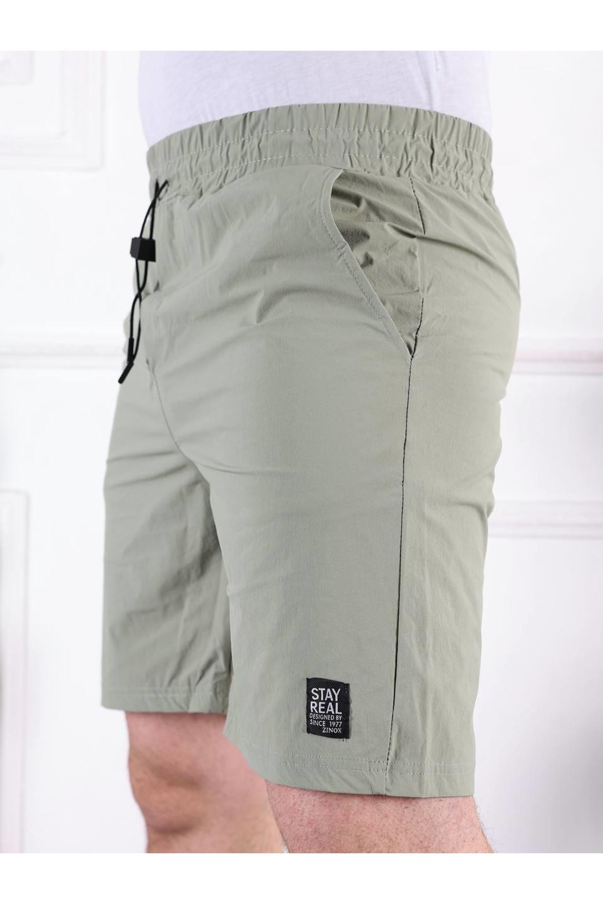 Erkek Beli Lastikli Dikiş Detaylı Kargo Cep Kapri Şort HAKİ