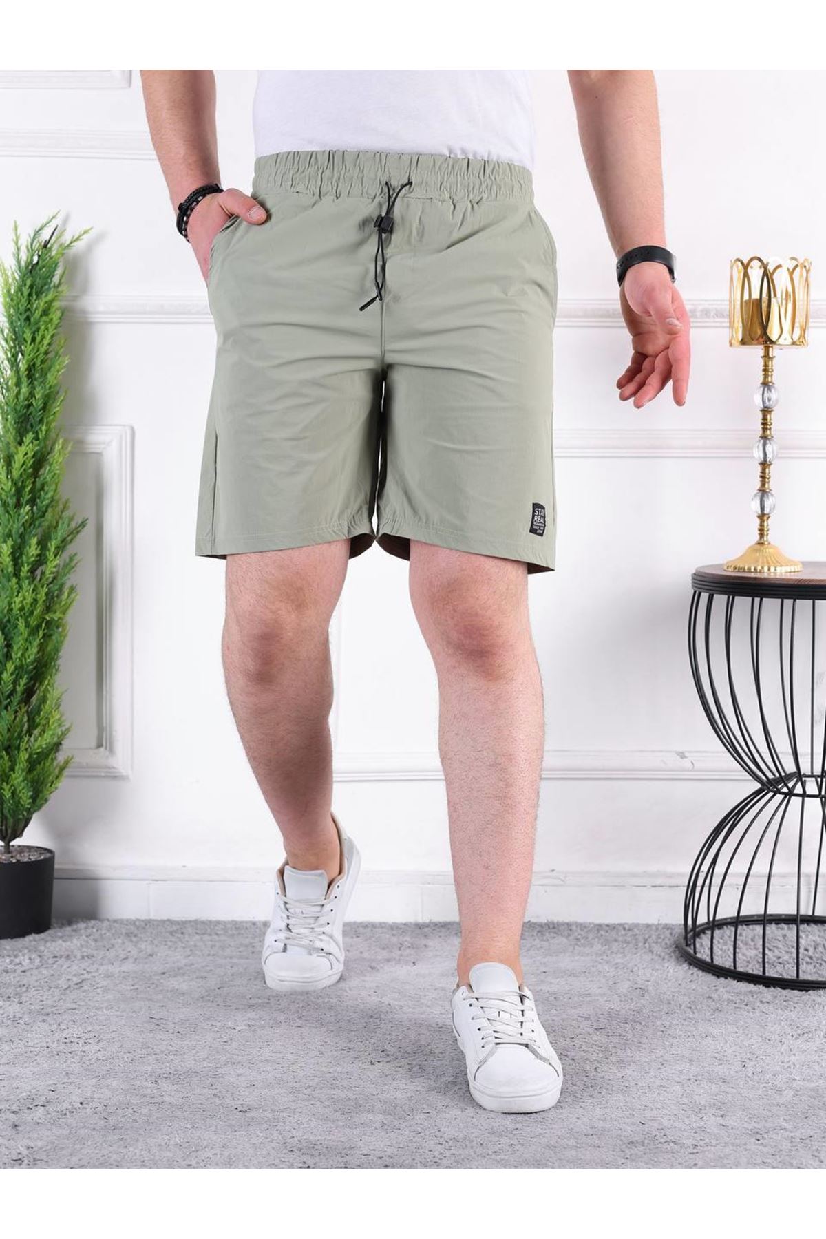 Erkek Paraşüt Kumaş Bel Lastikli Baskı Detaylı Kapri SU YEŞİLİ