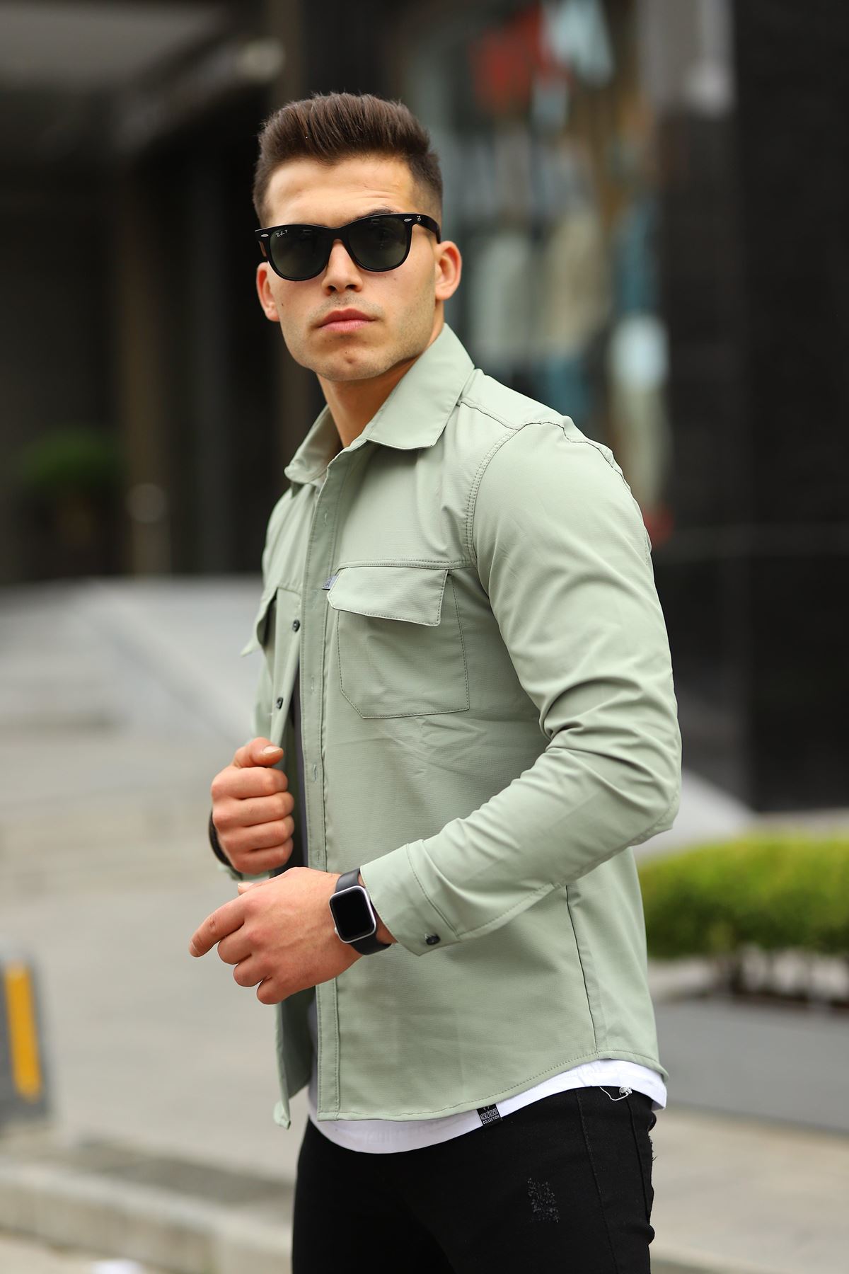 Erkek Paraşüt Kumaş Rahat Kalıp Gömlek SU YEŞİLİ