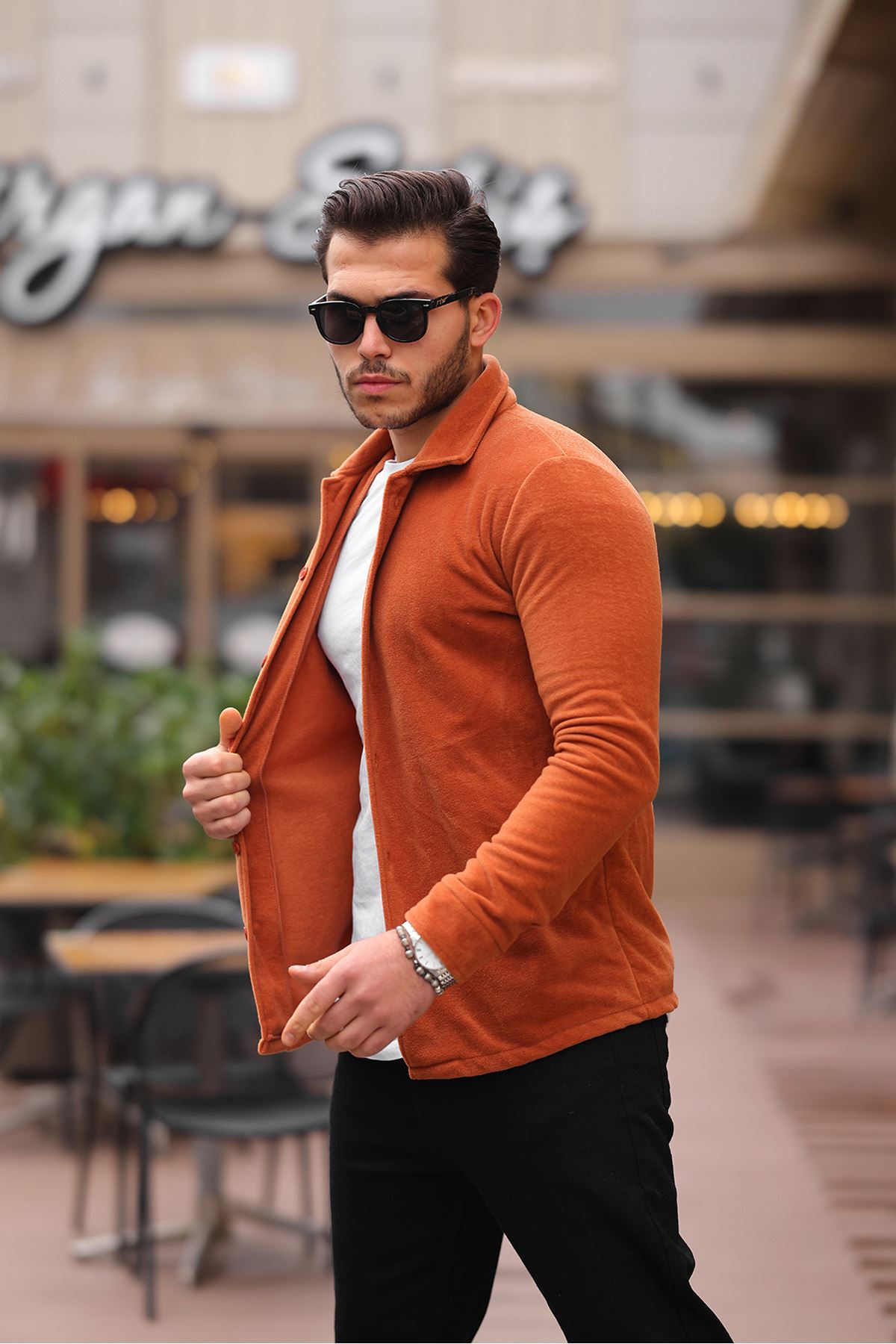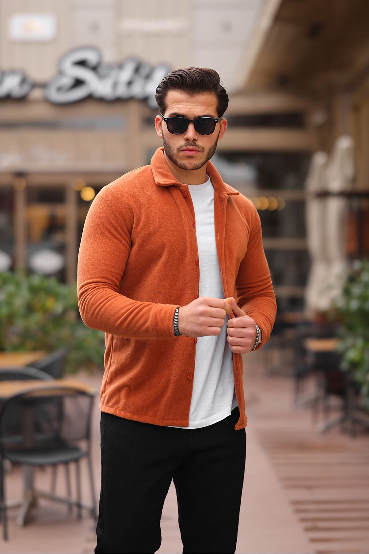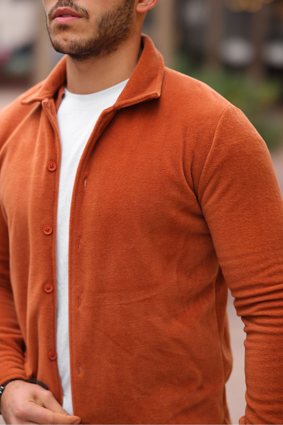 Erkek Polar Rahat Kalıp Gömlek KİREMİT