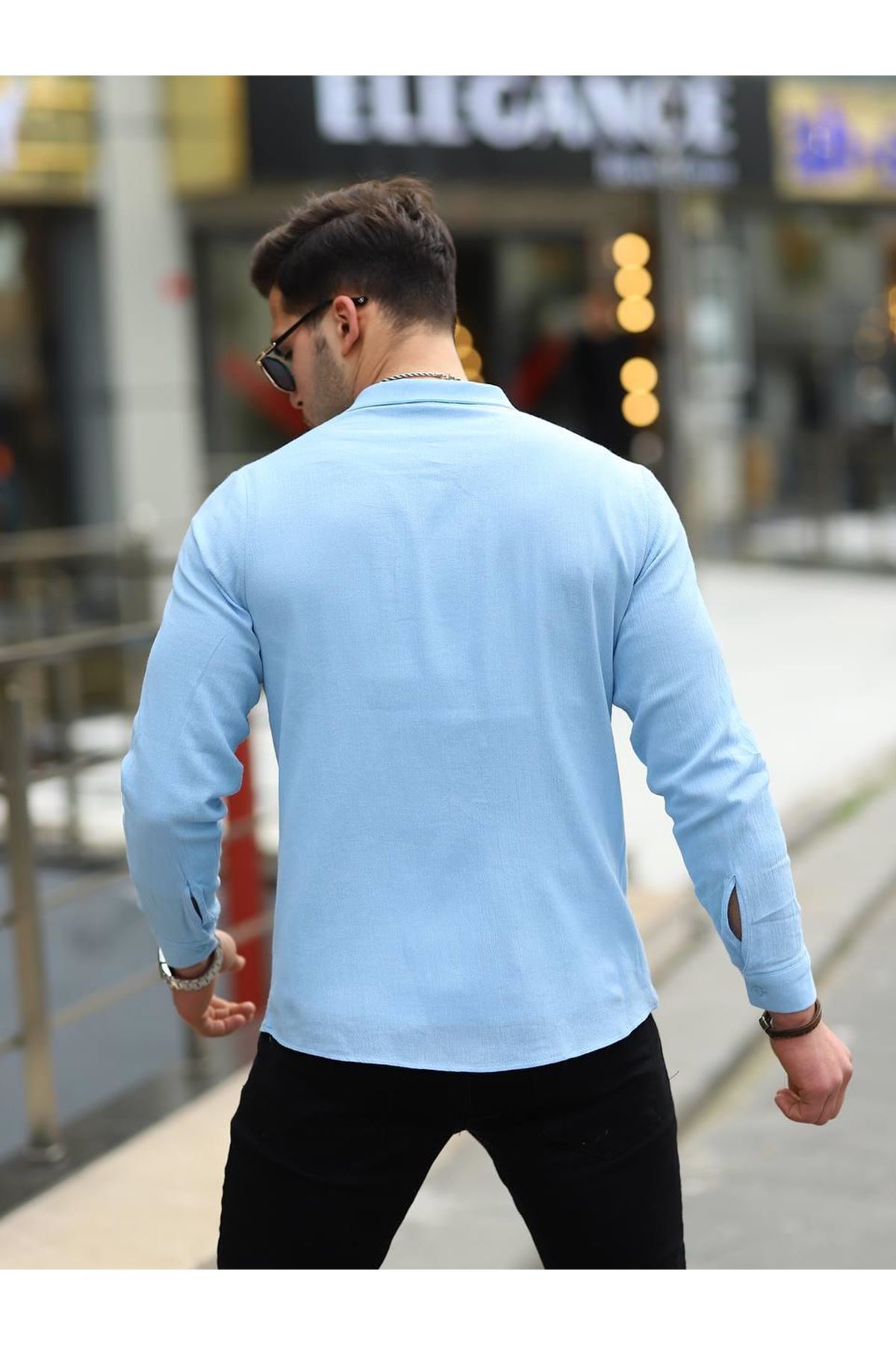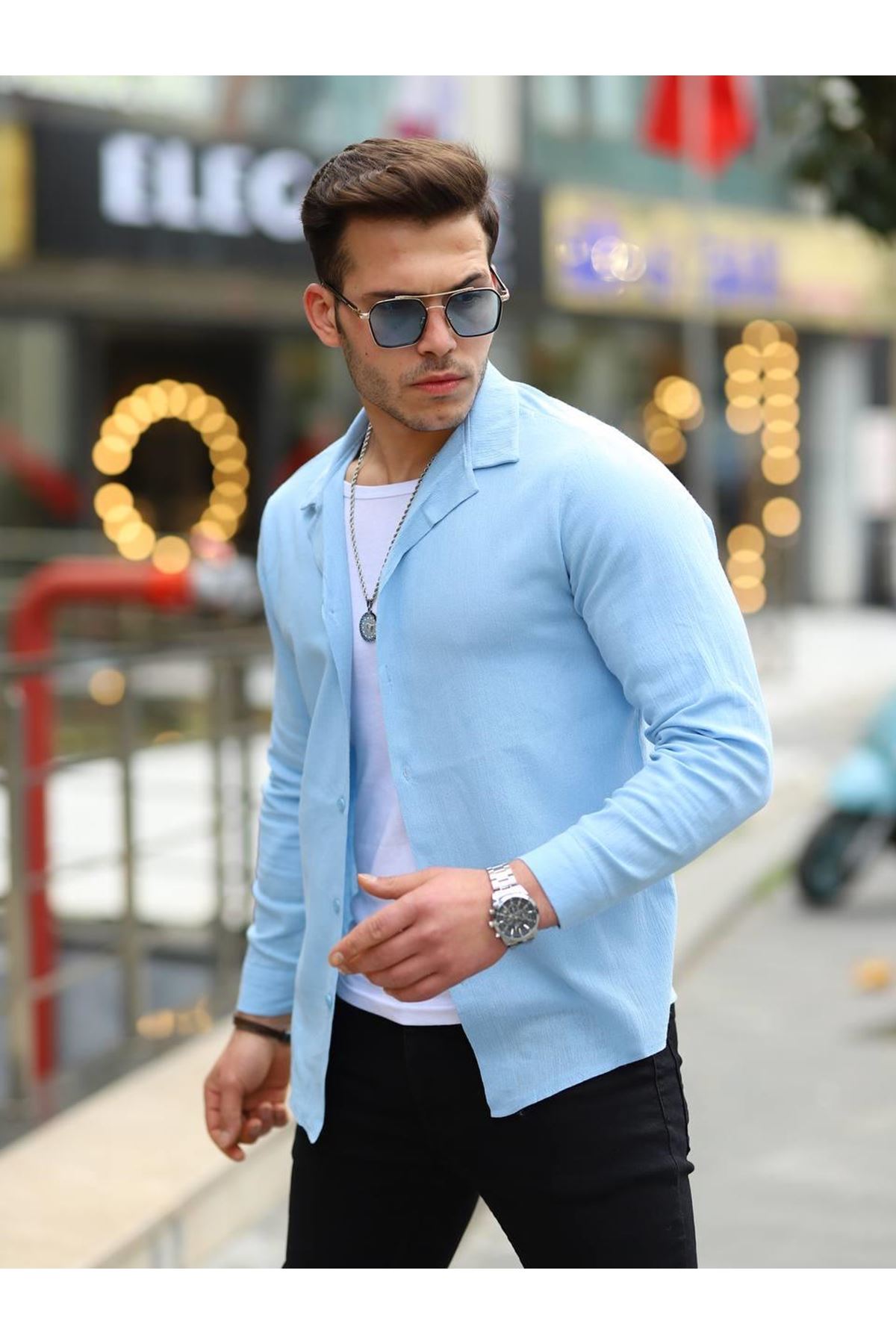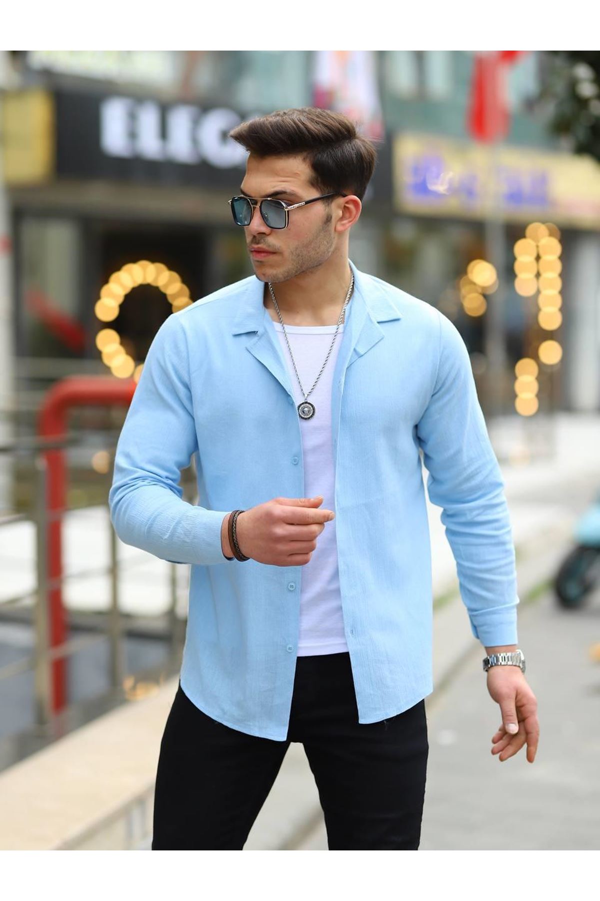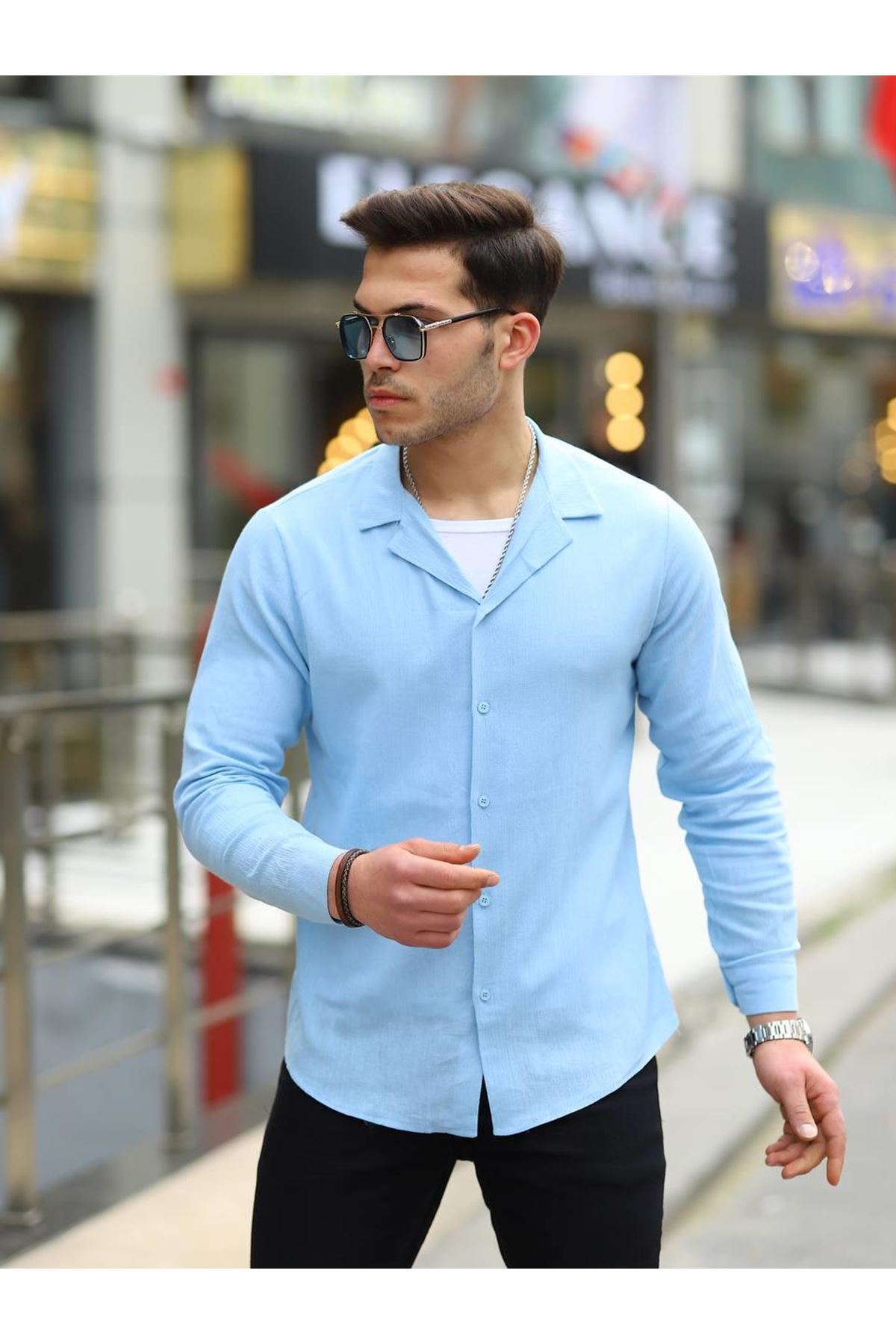 Erkek Şal Yaka Keten Gömlek BEBE MAVİ