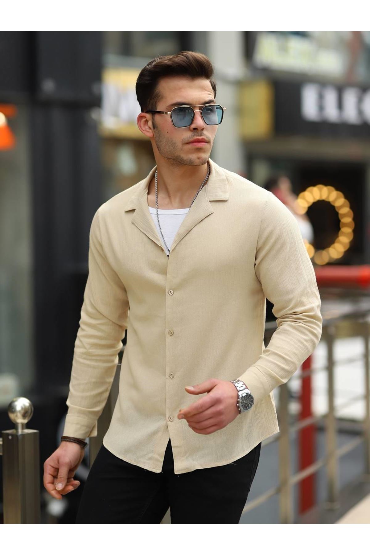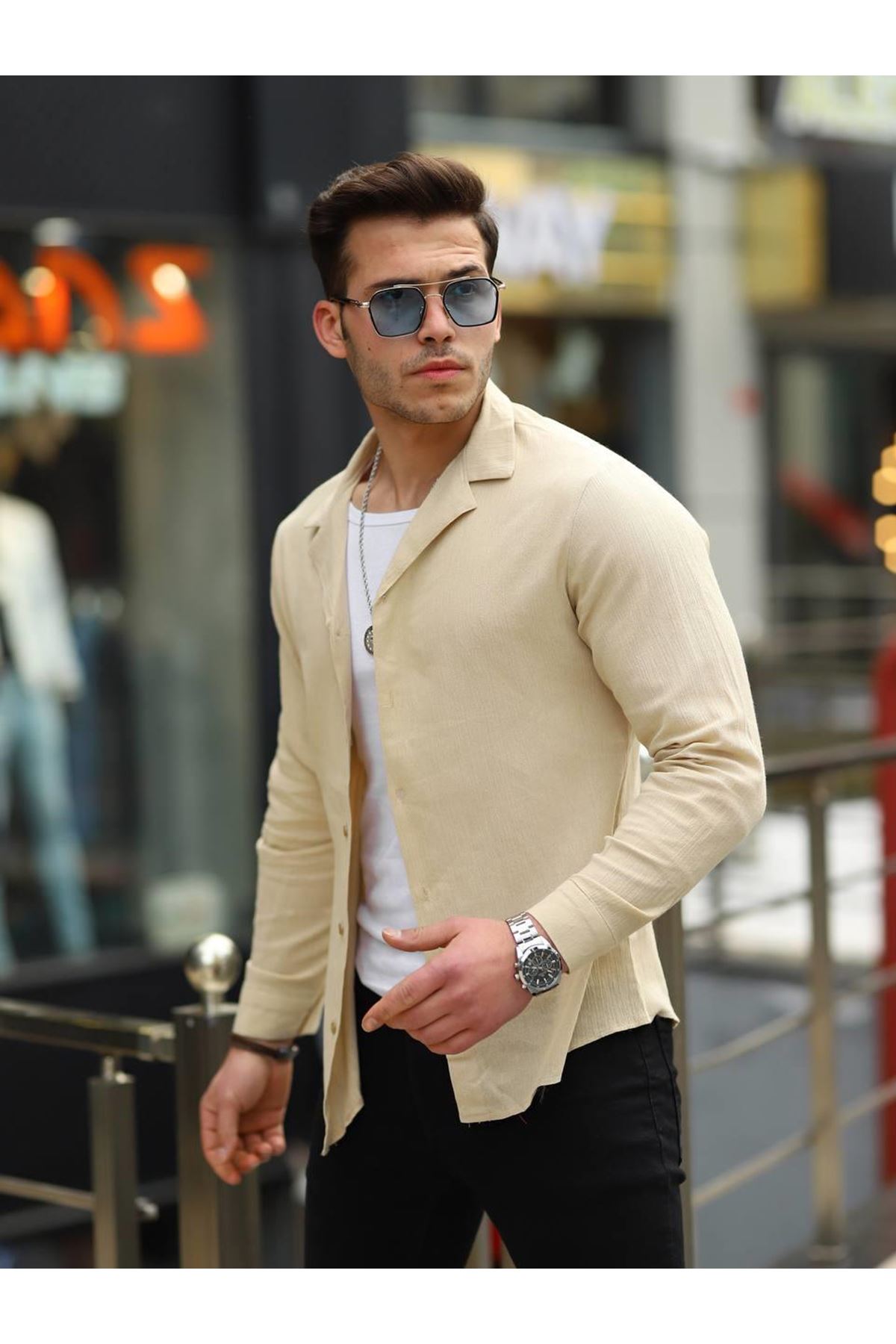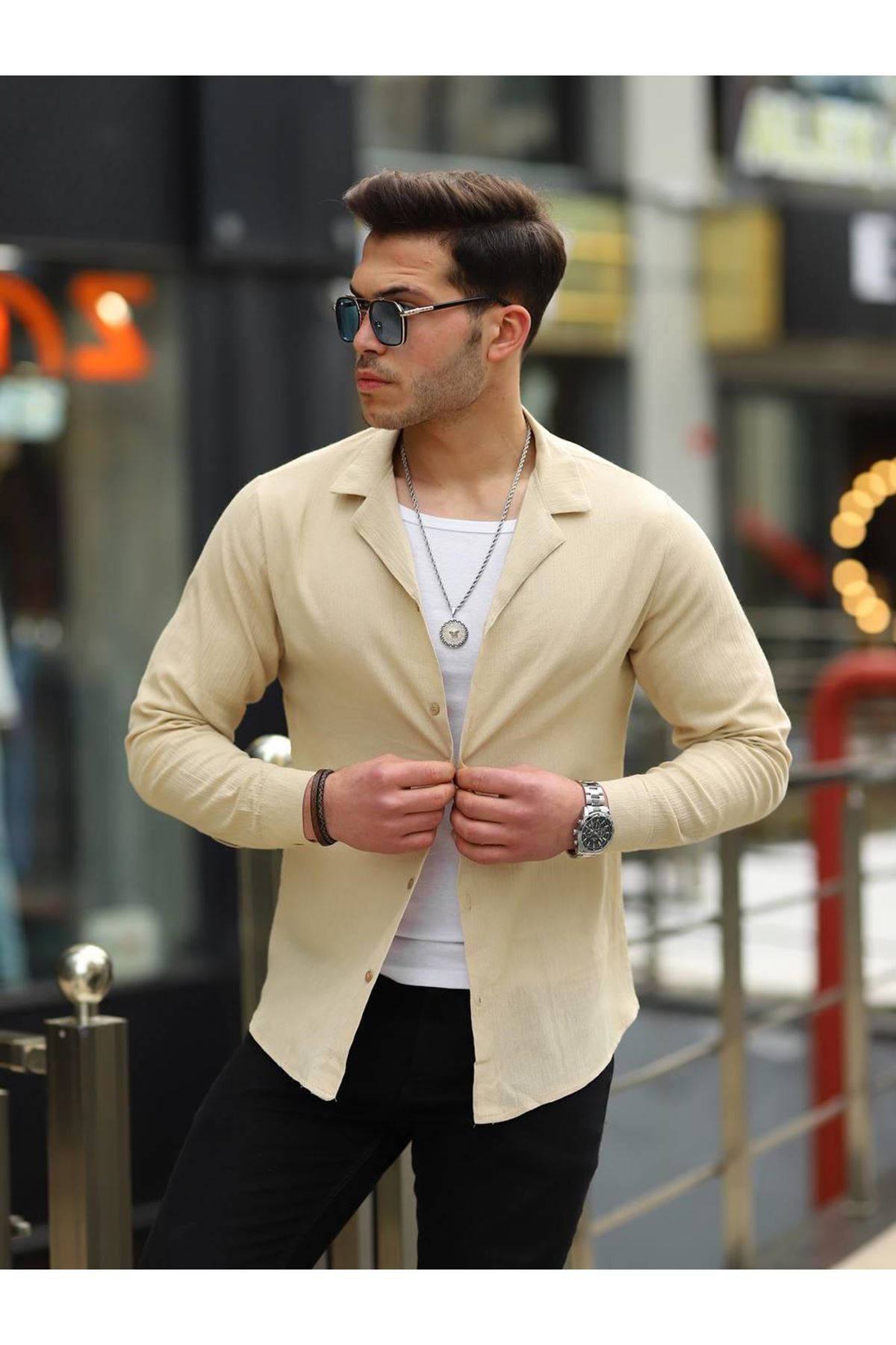 Erkek Şal Yaka Keten Gömlek HAKİ