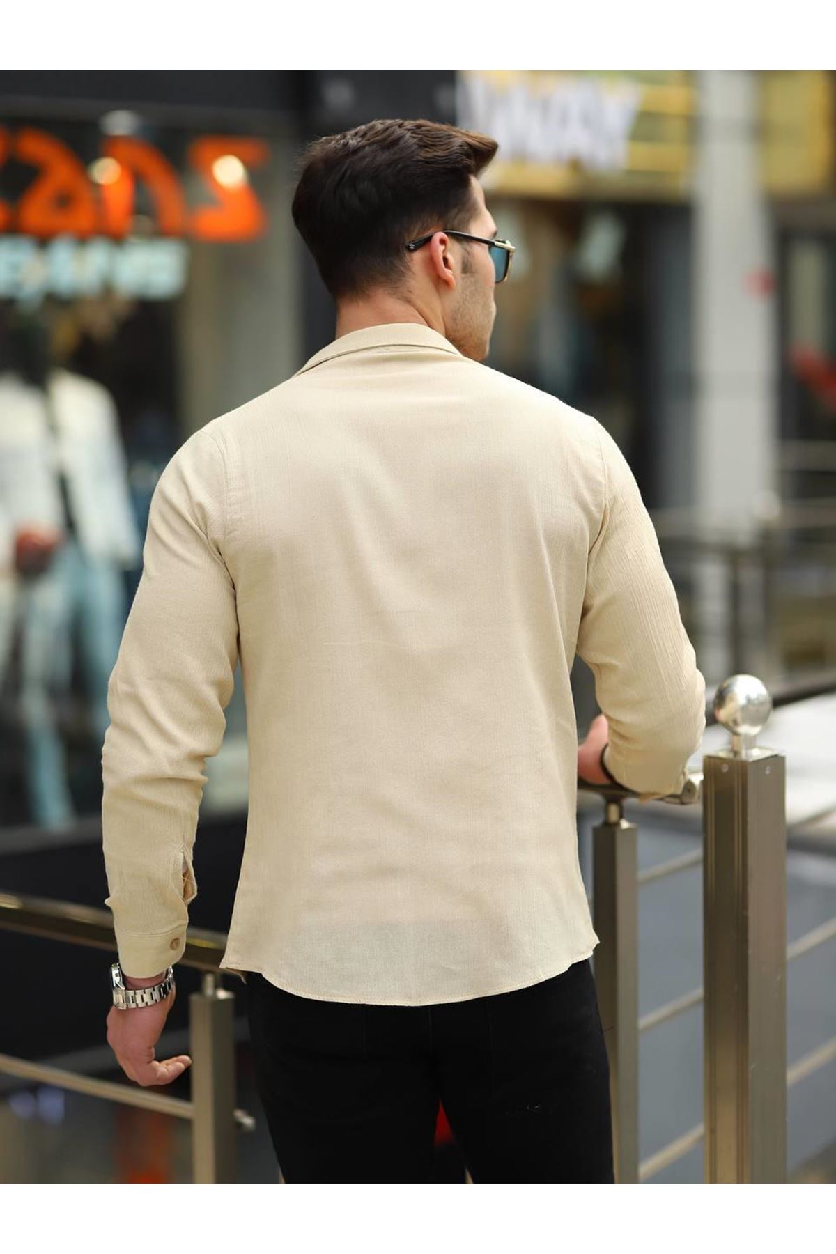 Erkek A Kalite Keten Slim Fit Uzun Kol Çift Kapaklı Gömlek MİNT YEŞİL