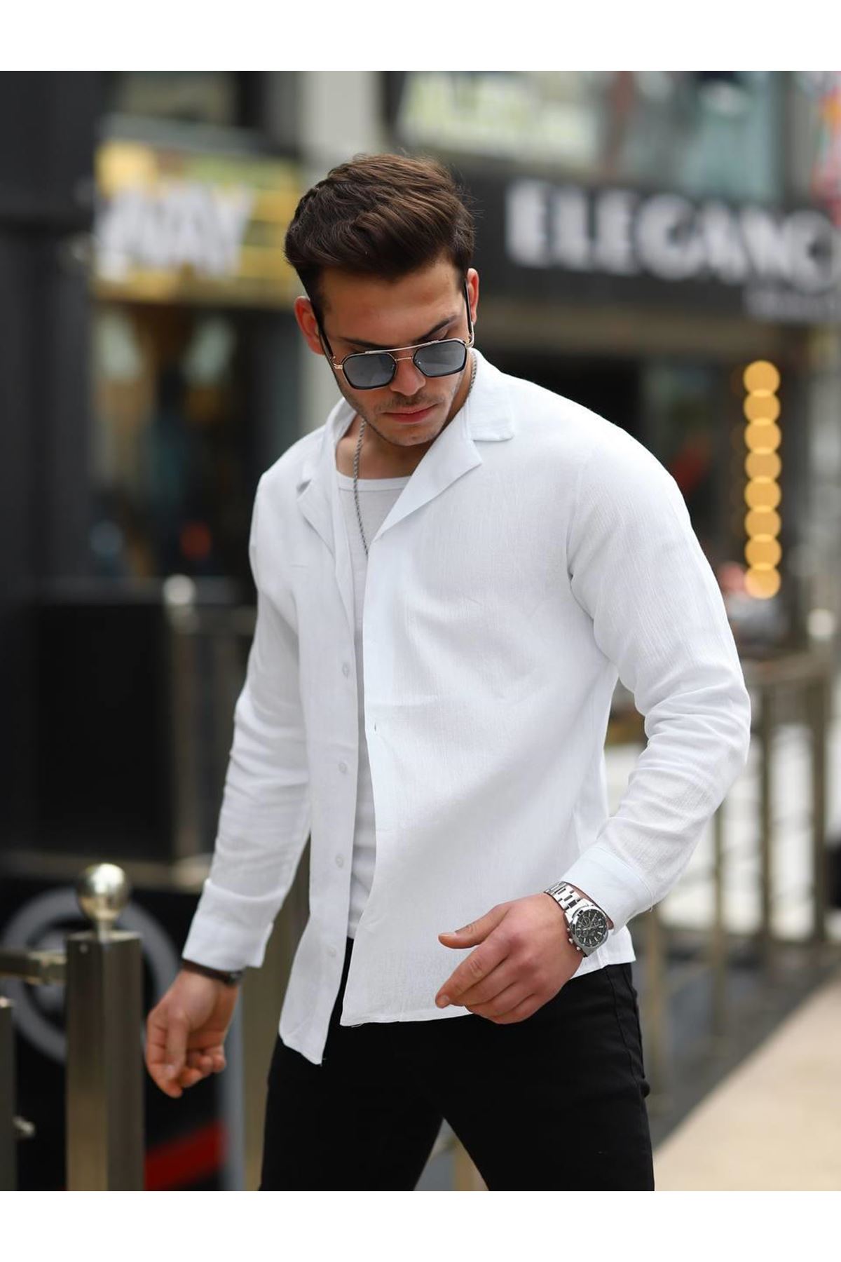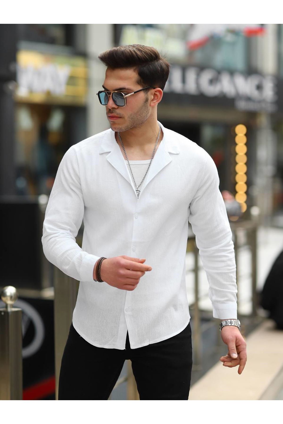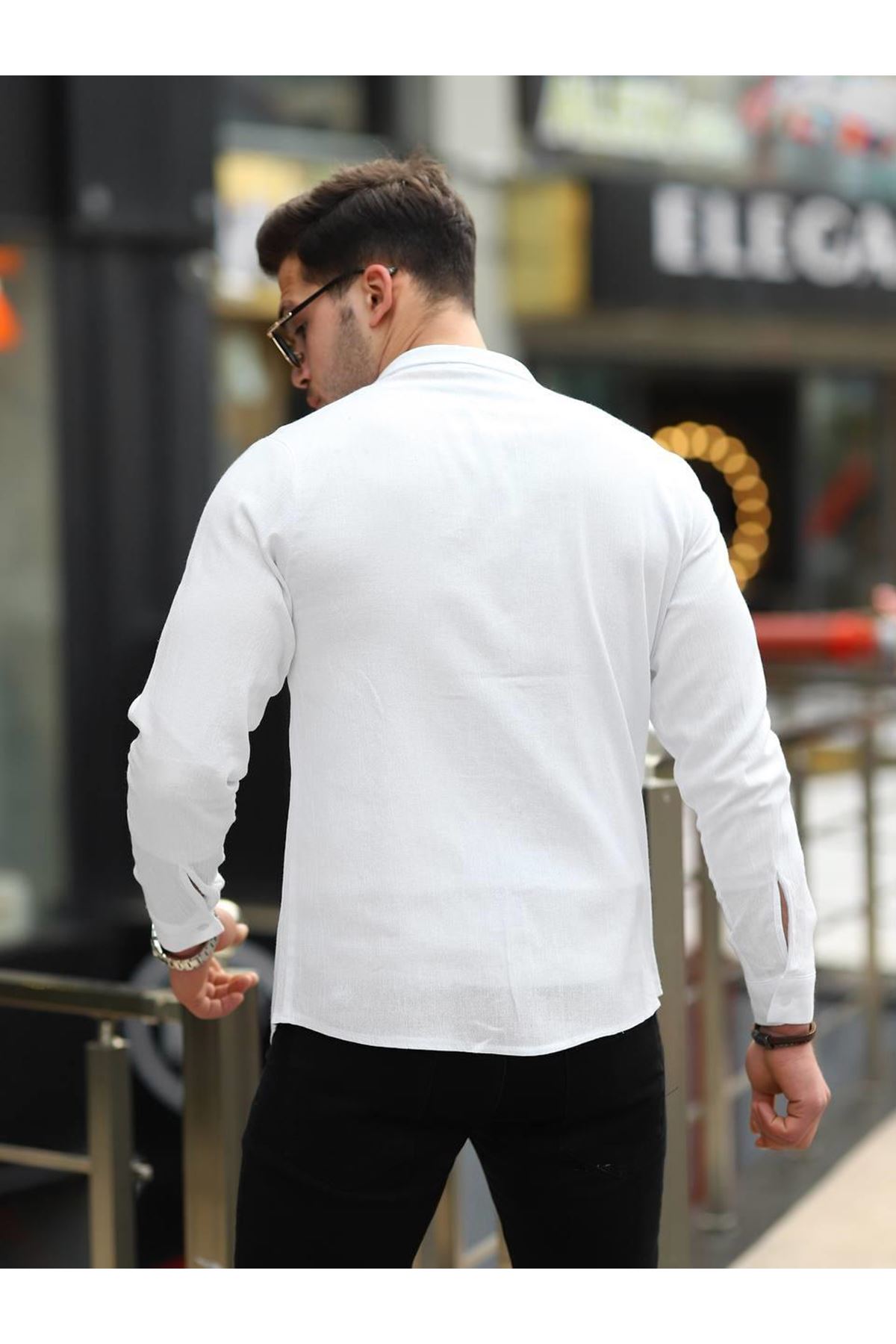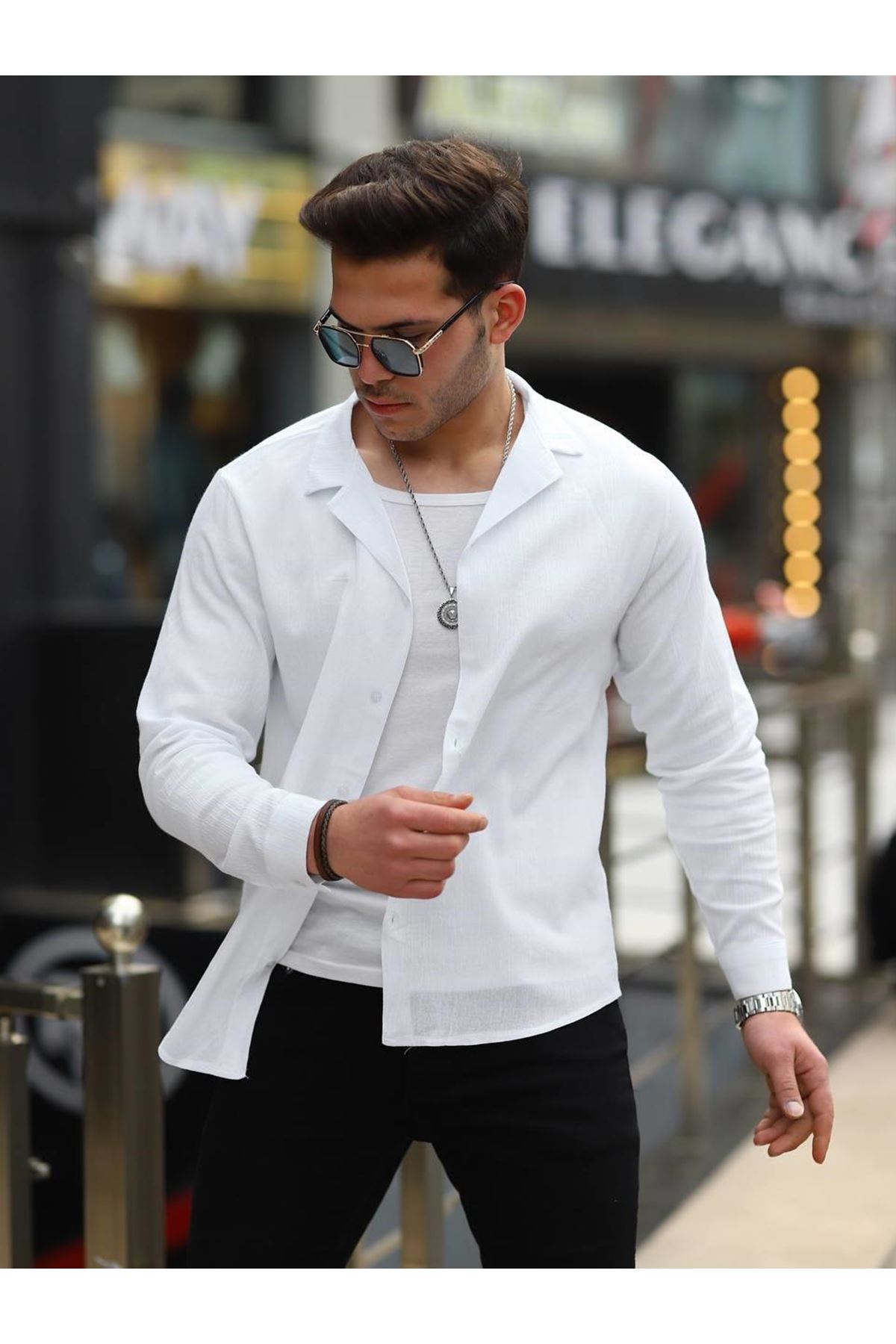 Erkek Şal Yaka Keten Gömlek BEYAZ