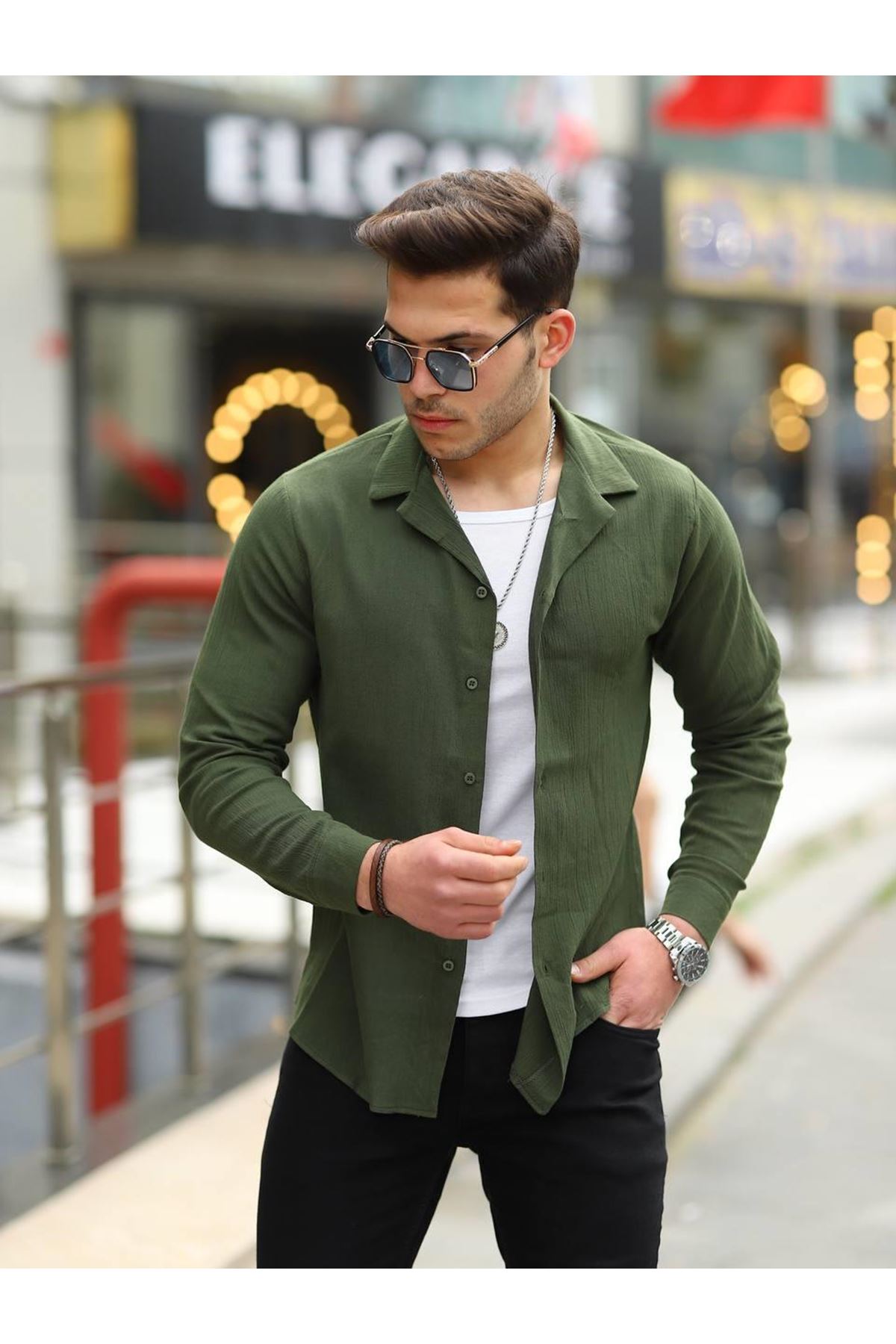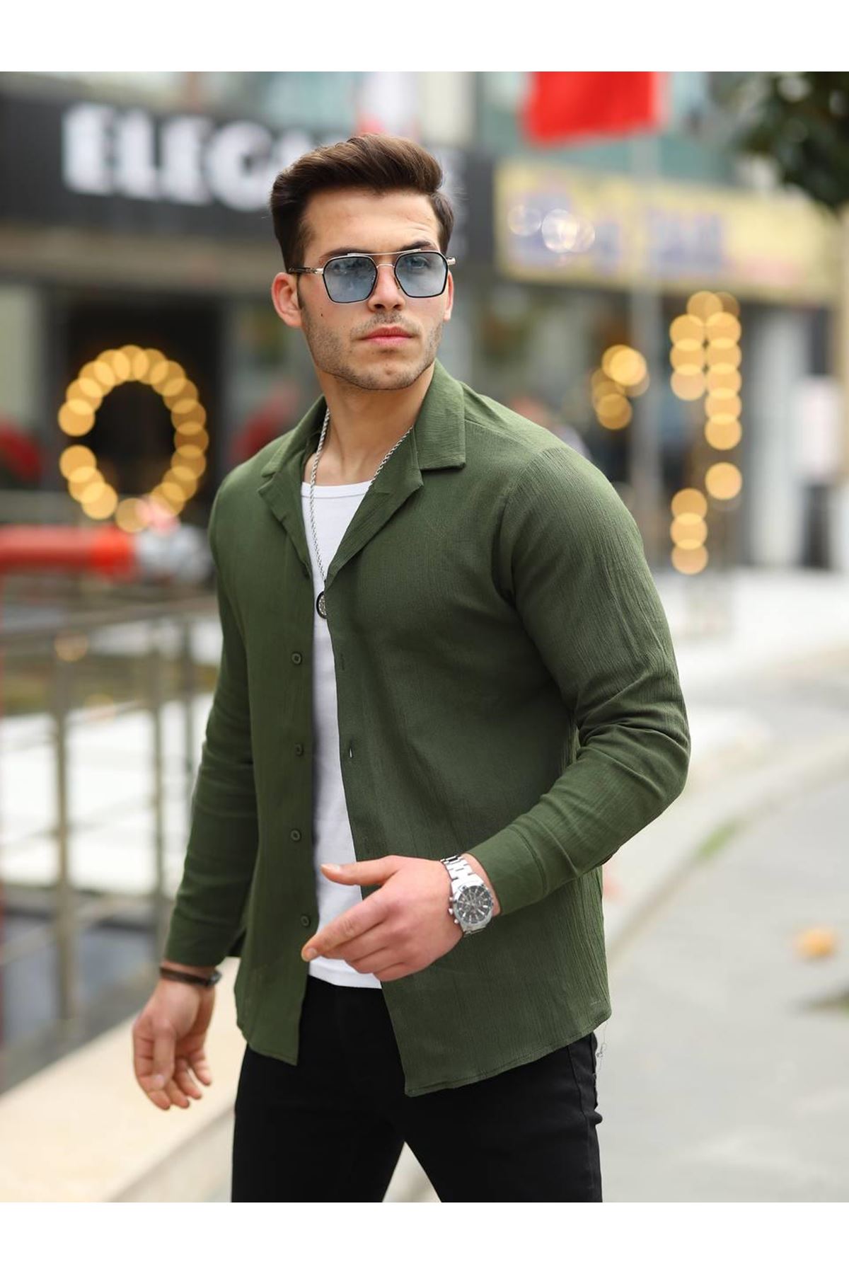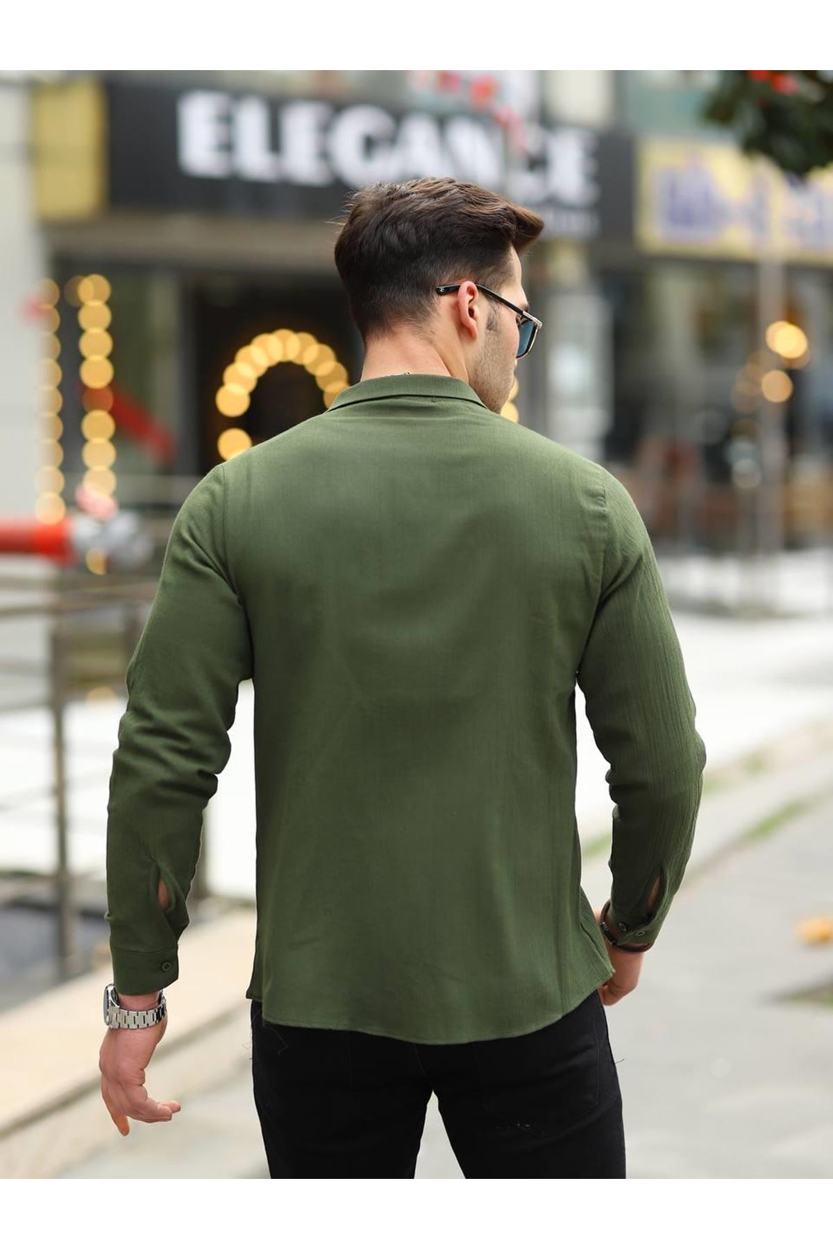 Erkek Şal Yaka Keten Gömlek HAKİ