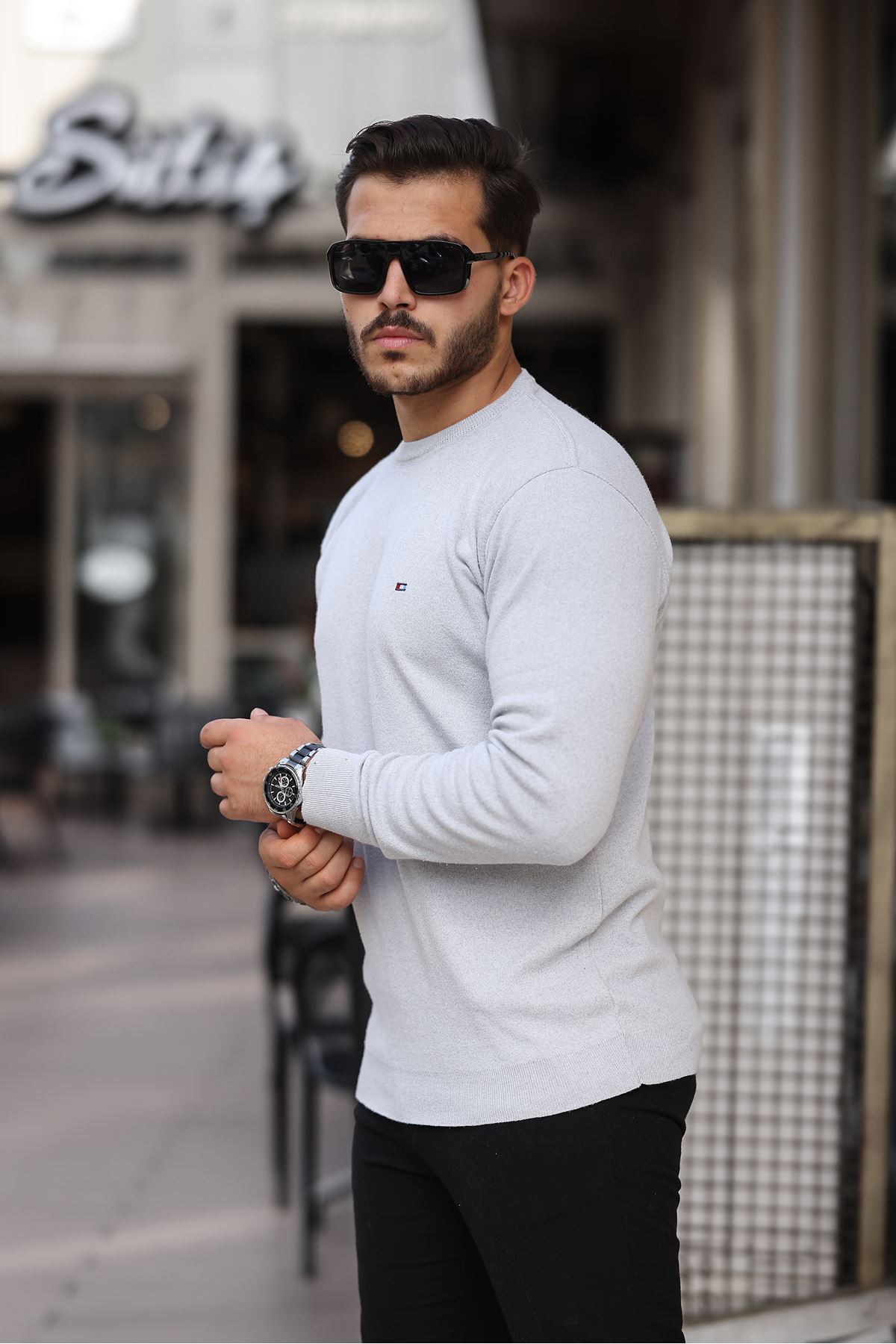 Erkek Sıfır Yaka Pamuklu Triko Kazak A.GRİ