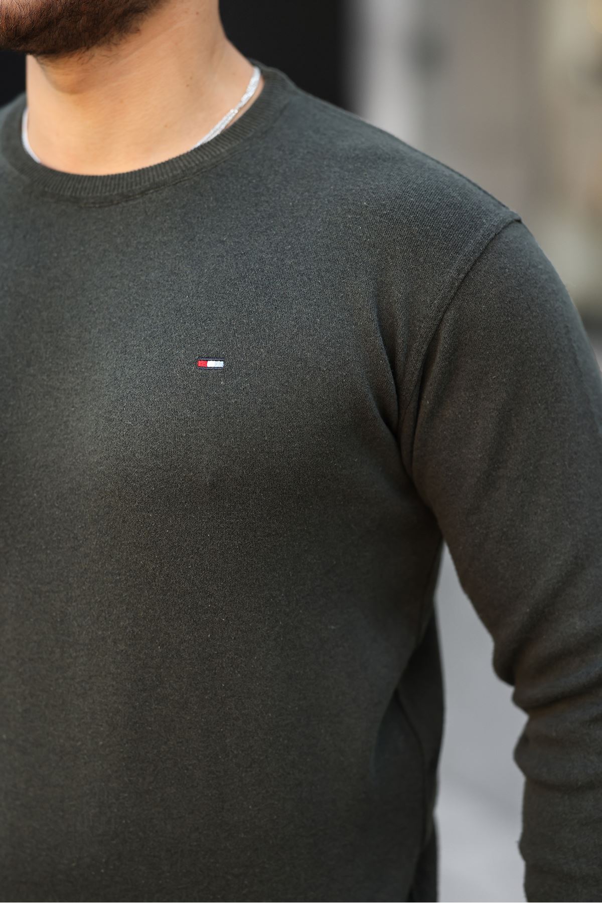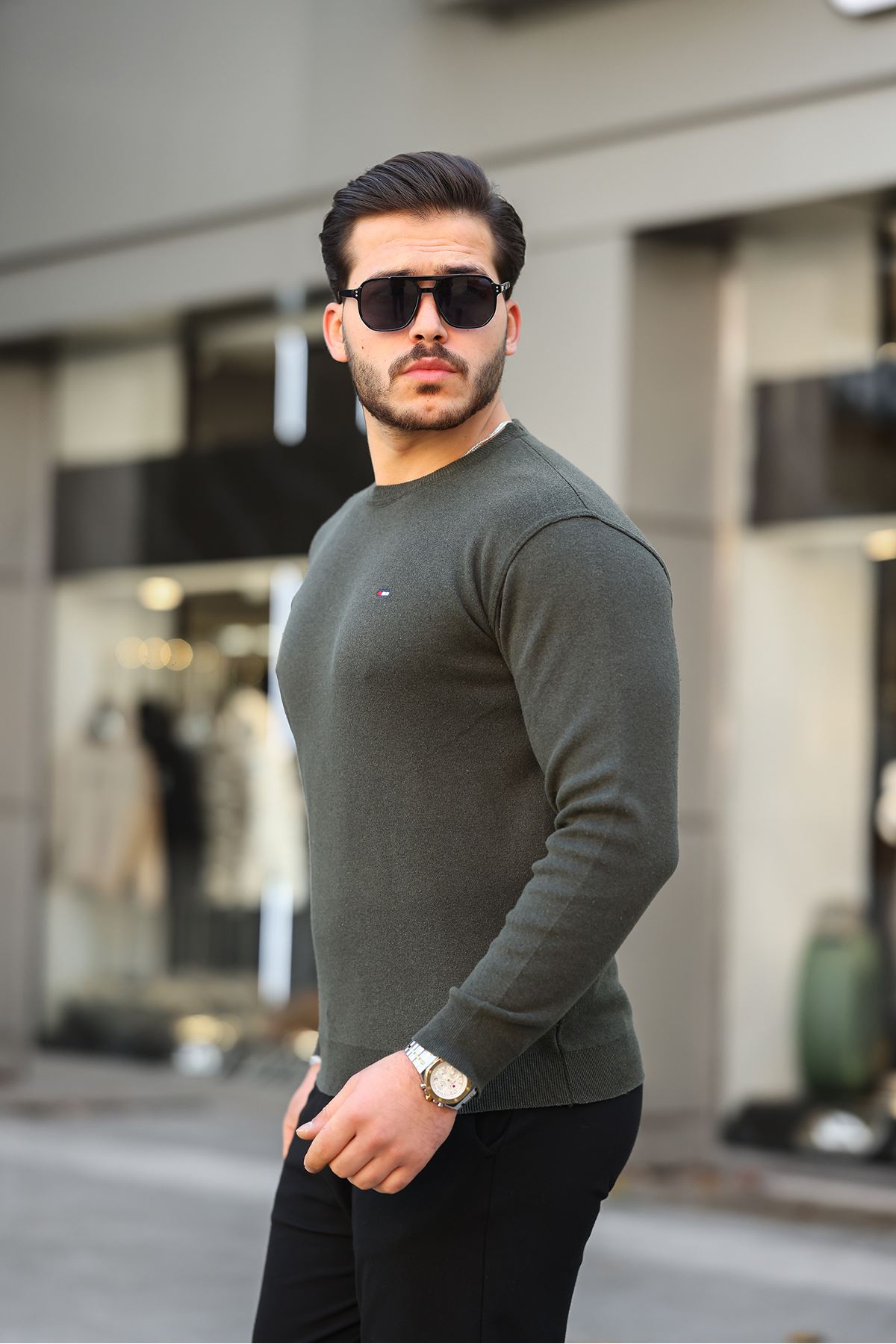 Erkek Sıfır Yaka Pamuklu Triko Kazak HAKİ
