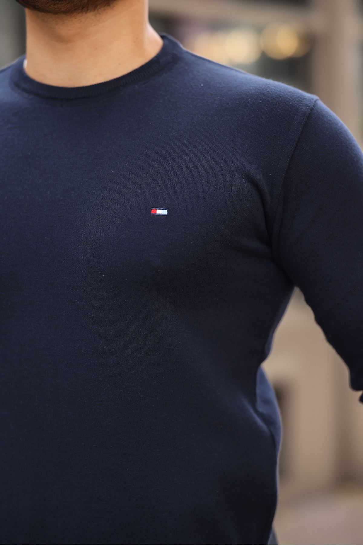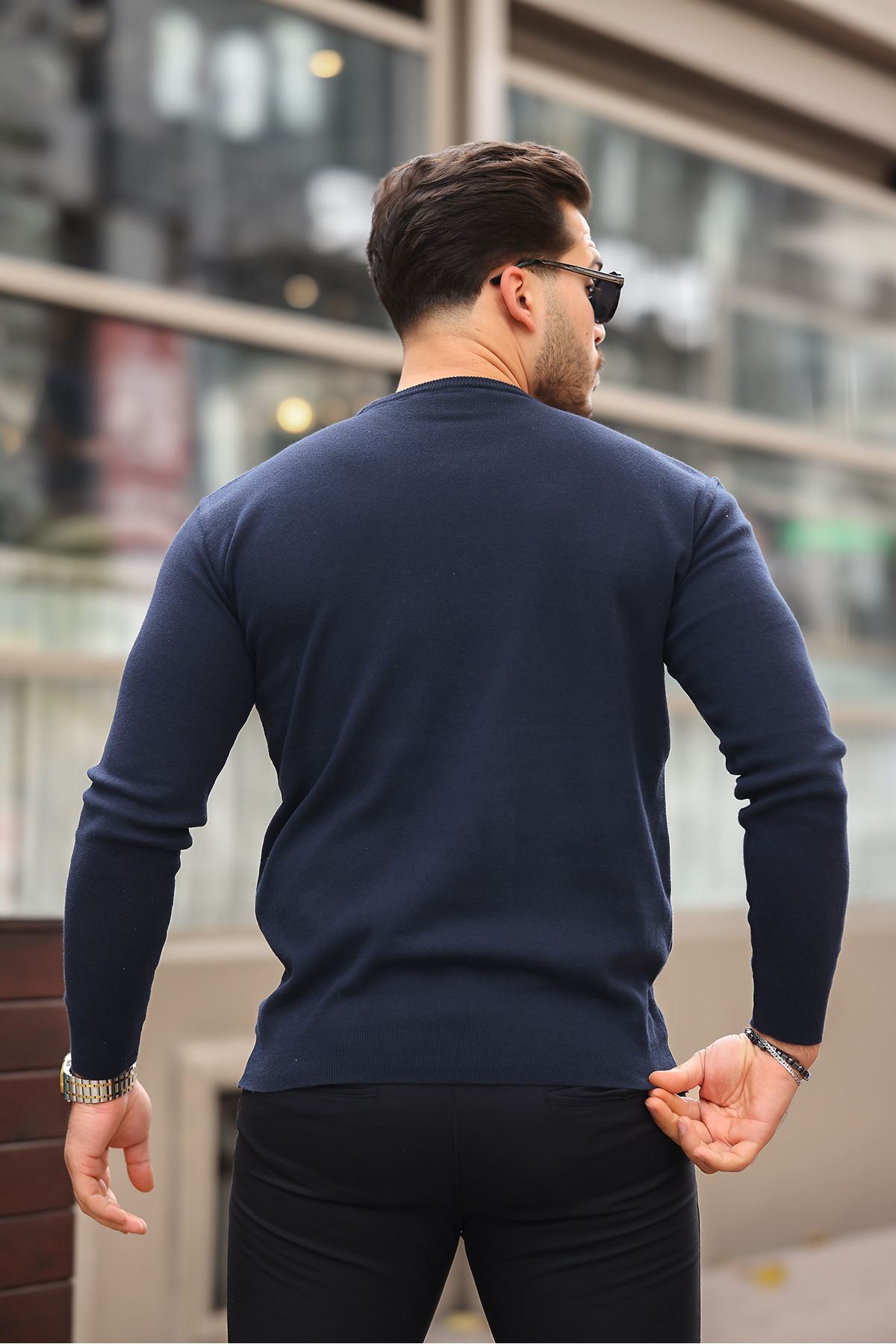 Erkek Sıfır Yaka Pamuklu Triko Kazak LACİVERT