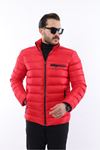 Erkek Kışlık Basic Dik Yaka Fermuarlı Kırmızı Şişme Mont