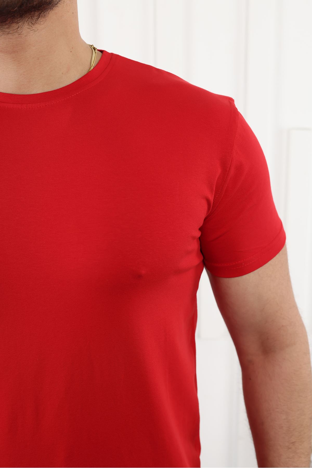 Erkek Slim Fit Baskısız T-Shirt KIRMIZI