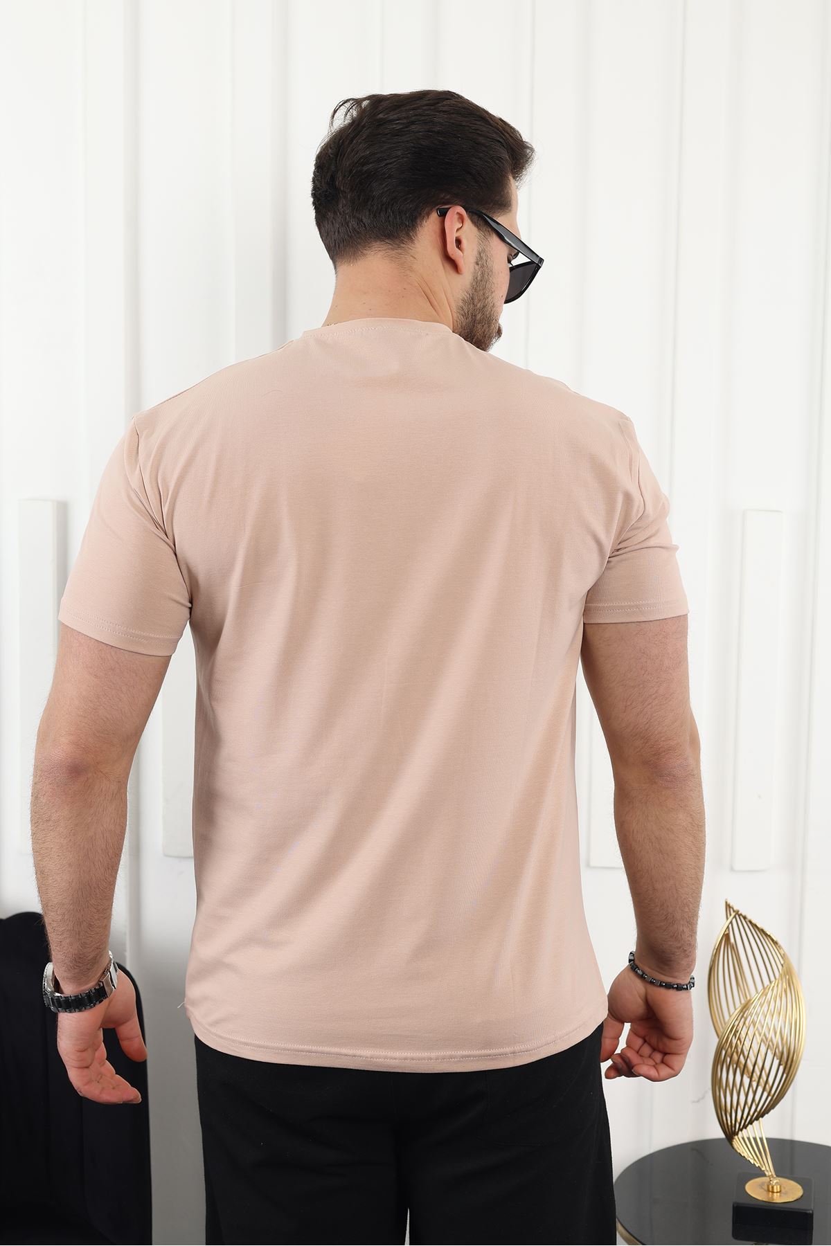 Erkek Slim Fit Baskısız T-Shirt BEJ