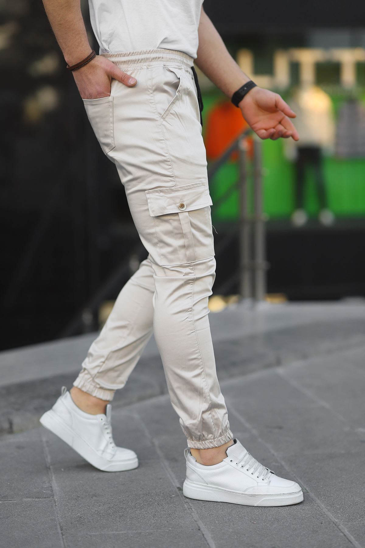 Erkek Slim Fit Beli Ve Paçası Lastikli Kargo Cep Pantolon TAŞ