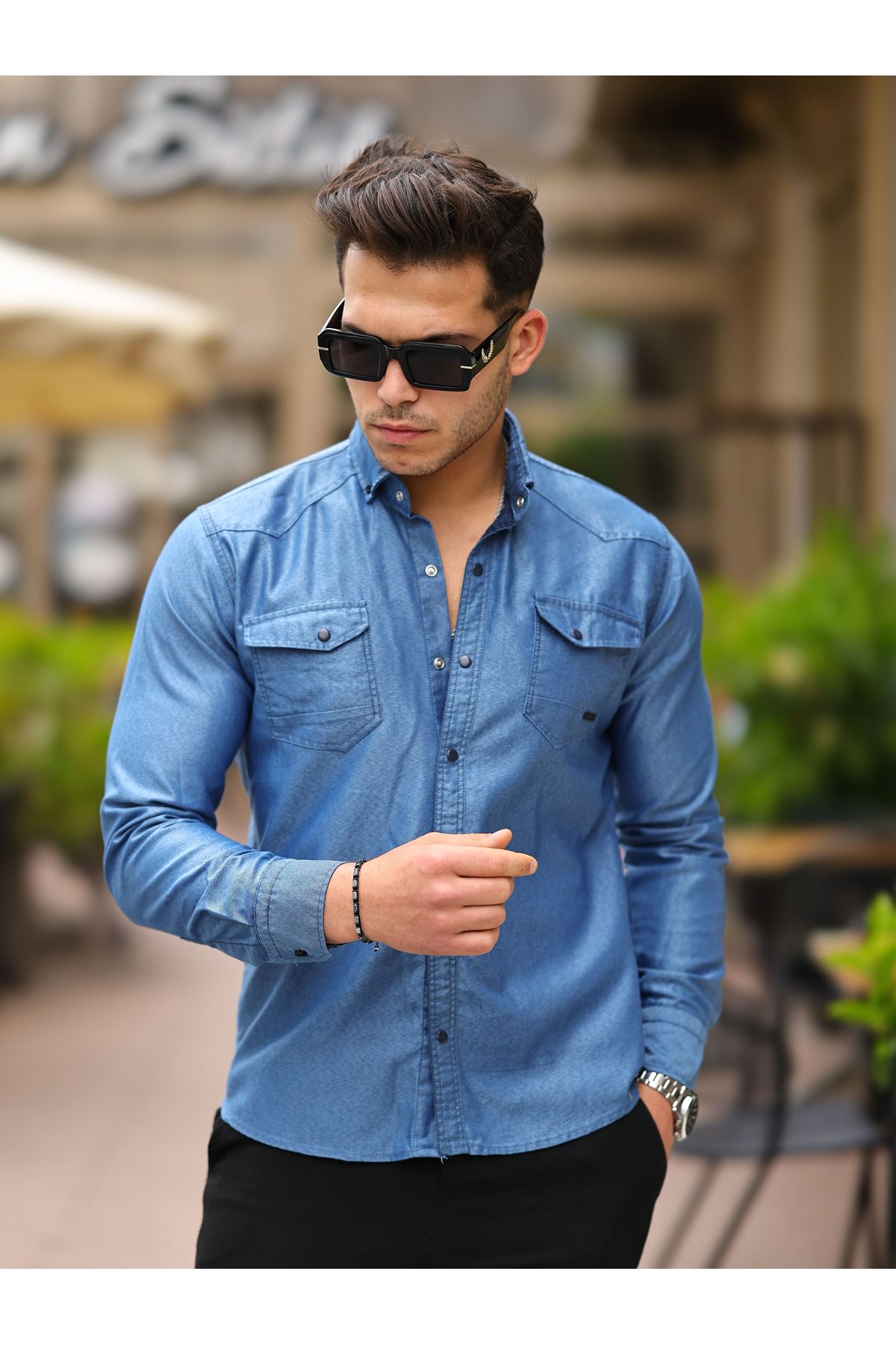 Erkek Slim Fit Çift Cepli Kot Gömlek SİYAH