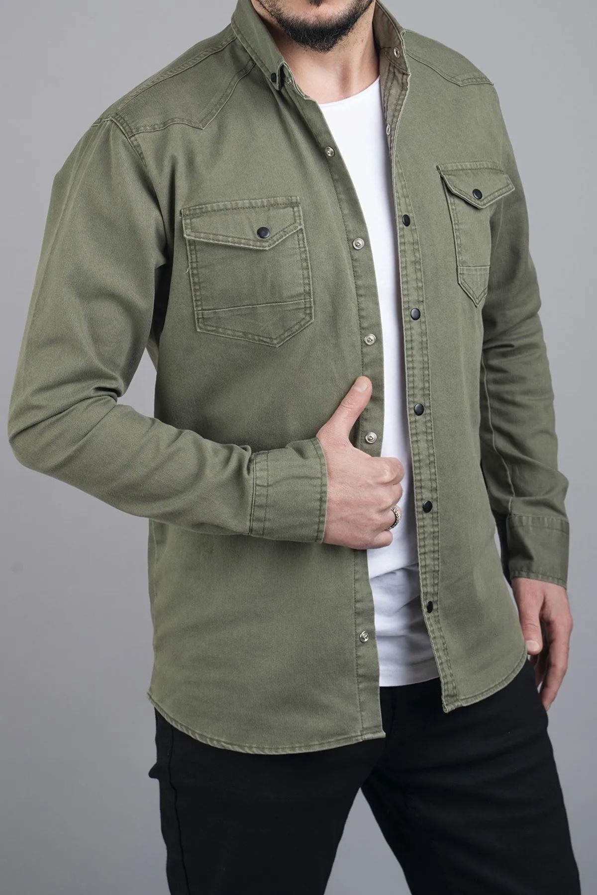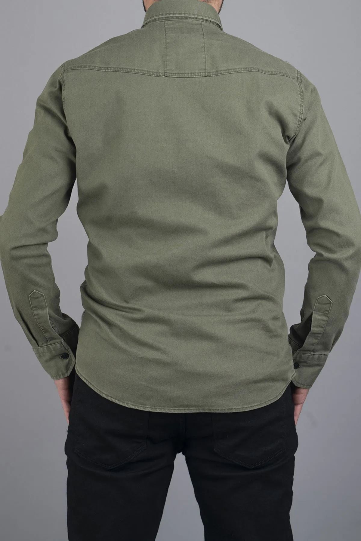 Erkek Slim Fit Çift Cepli Kot Gömlek YEŞİL TİNT