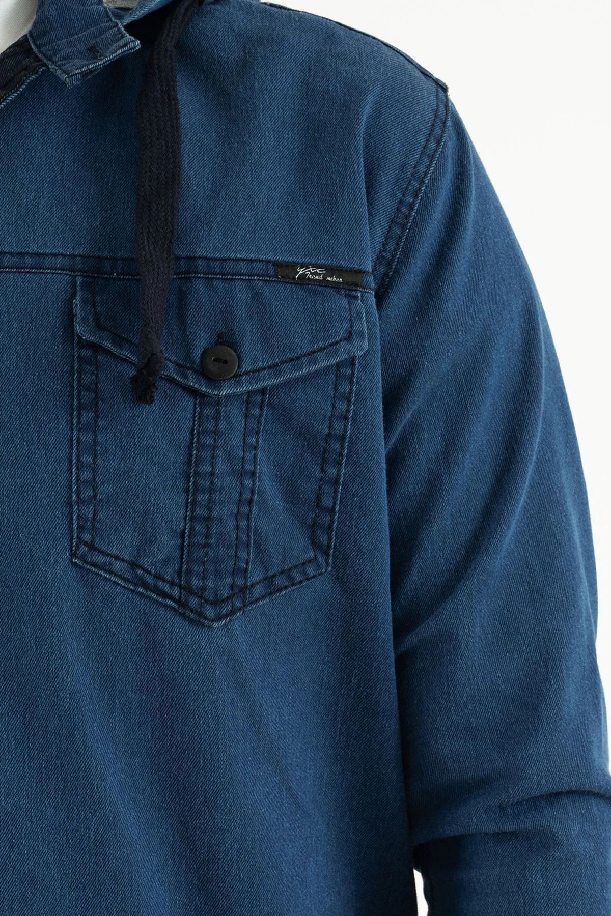 Erkek Slim Fit Dar Kalıp Kapüşonlu Kot Gömlek A.LACİVERT