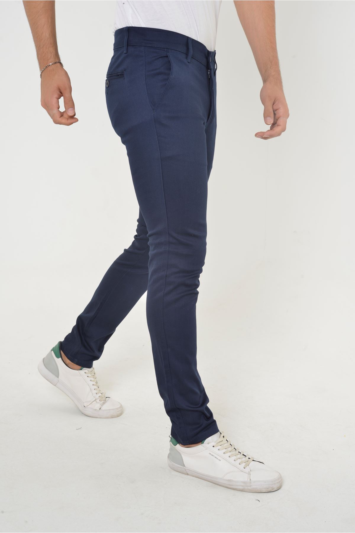 ERKEK SLİM FİT DAR KESİM ÖRGÜ KUMAŞ YAN CEP KOTON CHİNO PANTOLON A.LACİVERT