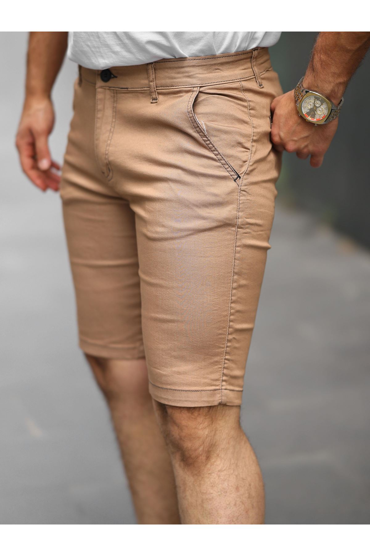 Erkek Slim Fit Kapri CAMEL