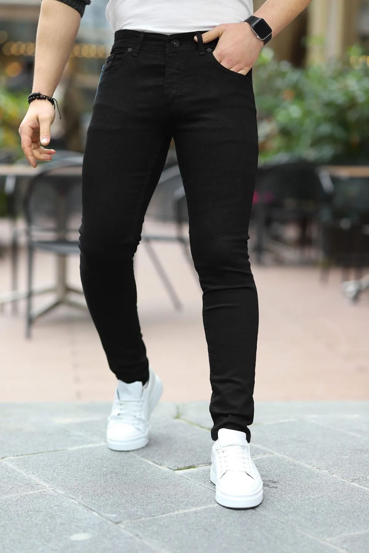 Erkek Slim Fit Likralı Denim Kot Pantolon Jean SİYAH