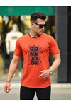 Erkek Slim Fit Nakış Desenli T-Shirt Turuncu