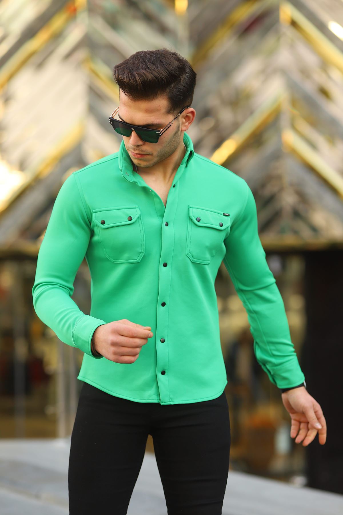 Erkek Slim Fit Scuba Gömlek YEŞİL