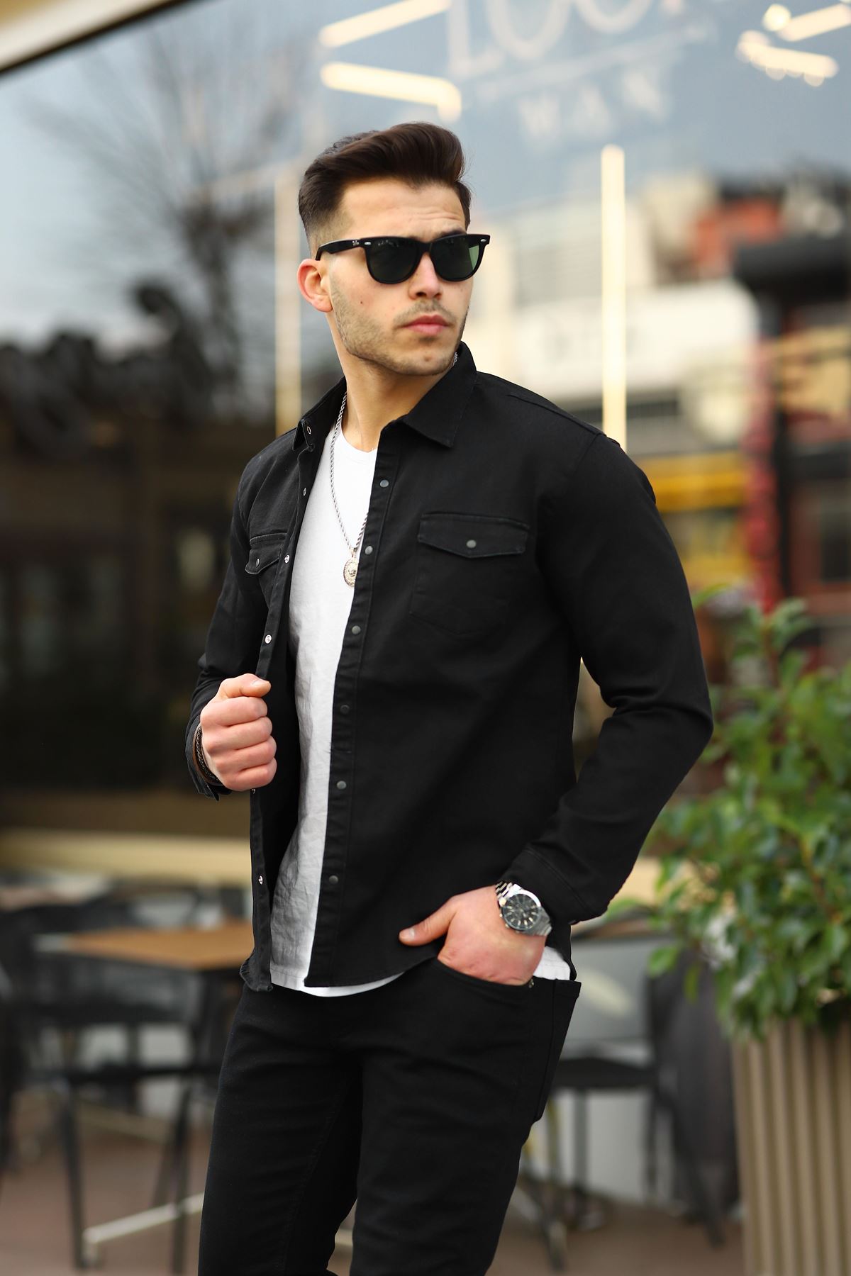 Erkek Slım ( Rahat Kalıp ) Kot Gömlek SİYAH
